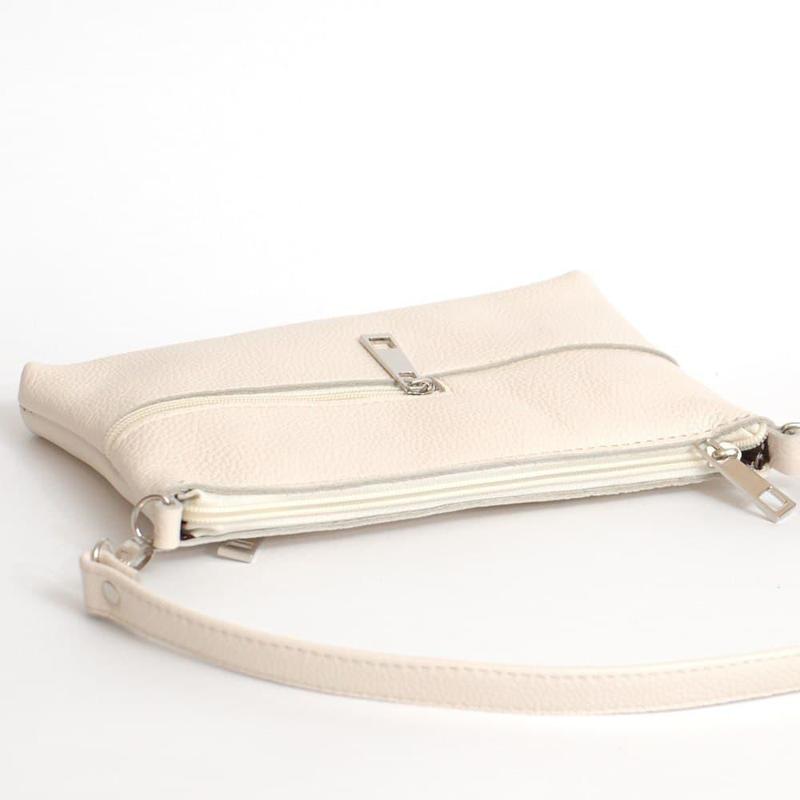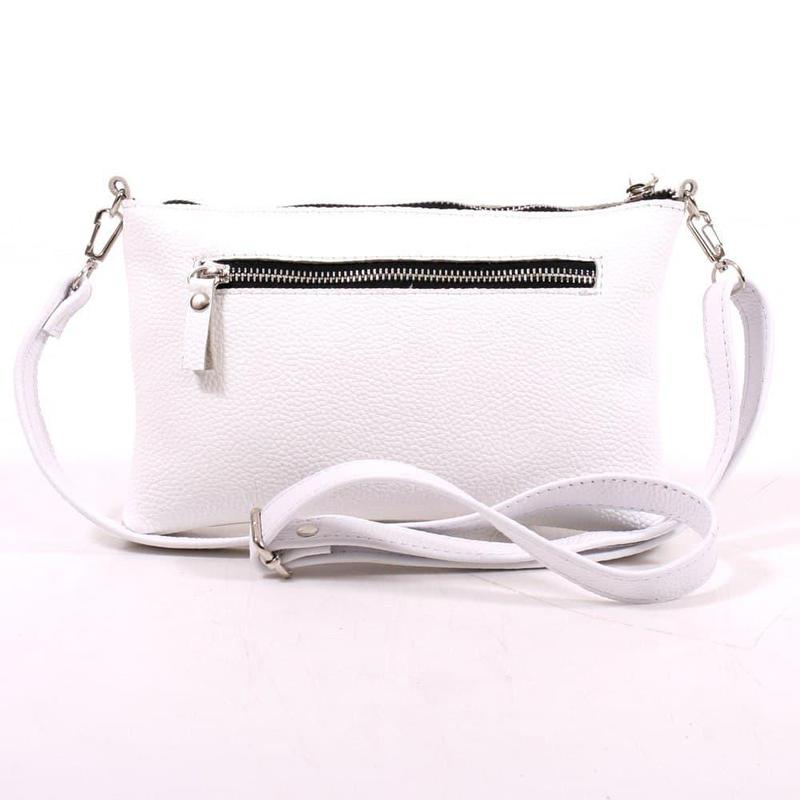 Женская небольшая кожаная сумка через плечо, белая, с длинным ремешком.