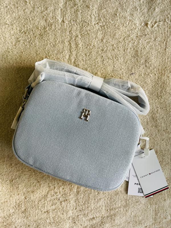 Оригинальная текстильная сумка кросс боди Tommy Hilfiger🫶 Очень стильная, компактная и изысканная. Грубый текстурный материал. Изготовлена из частично переработанного полиэстера♻️ Совершенно новая, с бирками, оригинал. Привезена из США. Снаружи логотип ТН и брендированная фурнитура. Застёгивается на молнию. Модель с двумя отделениями. Внутренний карман на молнии. Длинная ручка – 130 минимальный/145 максимальный. Цвет: голубой Размеры: высота 16см, ширина (у основания) 22см, глубина 6см. текстильный материал
