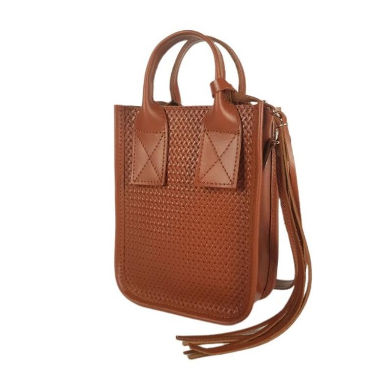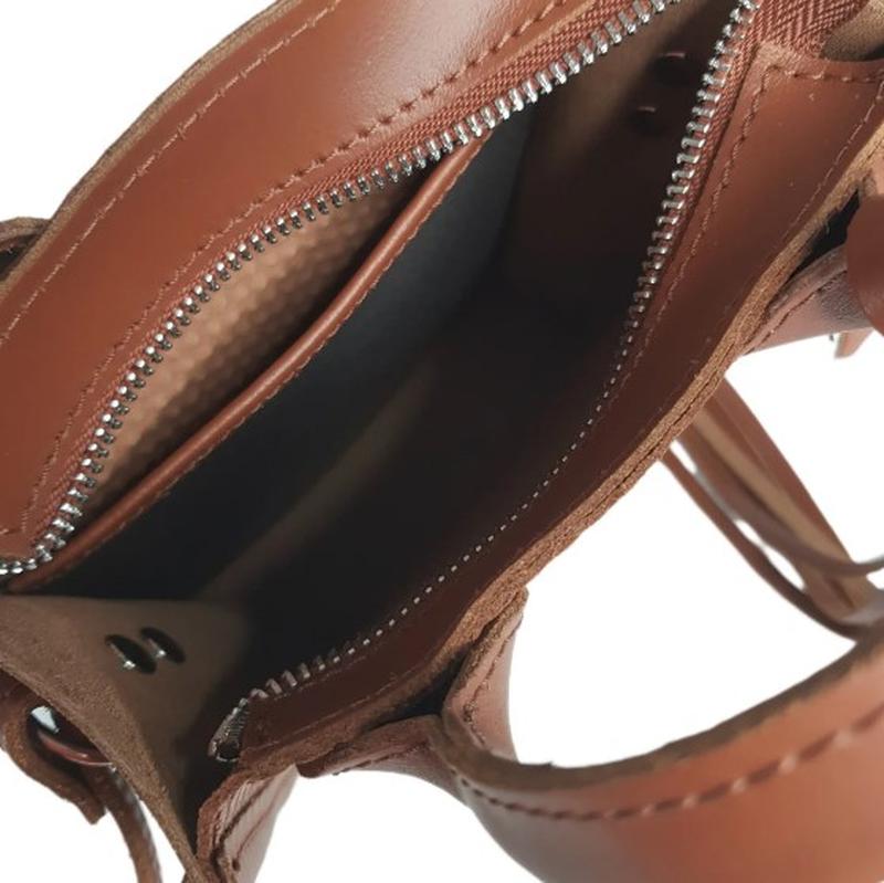 Материал: натуральная кожаРазмер, см: 16 x 7 x 20 (ДxШxВ)Сумка закрывается на молнию.Сумка без подклада, внутри открытый карман.Украшена сумочка брелком-кисточкой из кожи.Фурнитура - сереброЦвет- гончарная глина