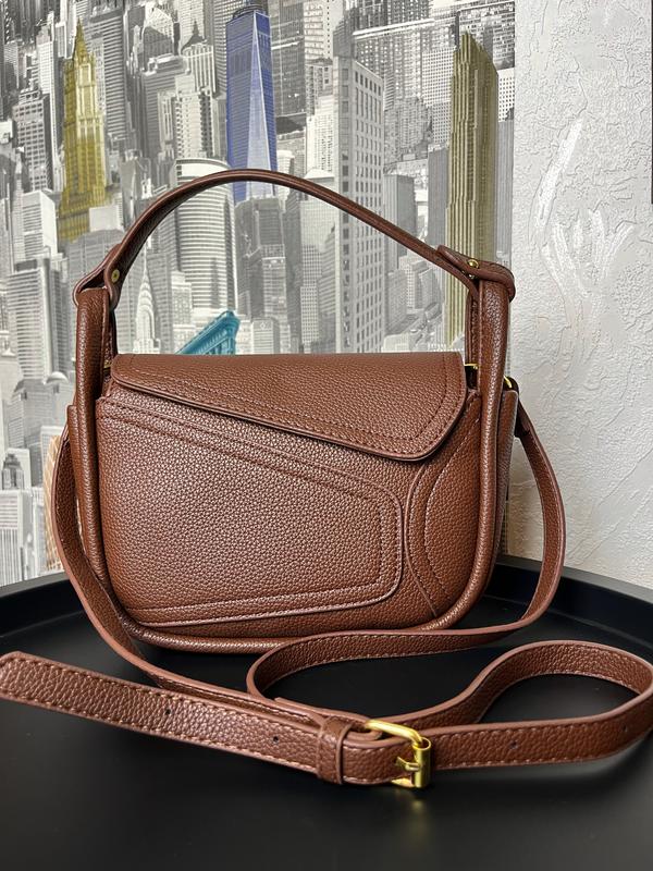 Материал: качественная эко-кожа Цвет: коричневый Размер: 25 х 17 х 8 см Два ремешка в комплекте Сумка среднего размера с подкладкой, внутри маленький карман. В комплекте два ремешка. Короткий в виде ручки и длинный регулируемый ремешок. В наличии! Доставка по Украине