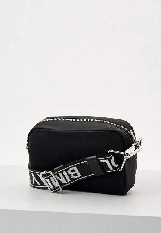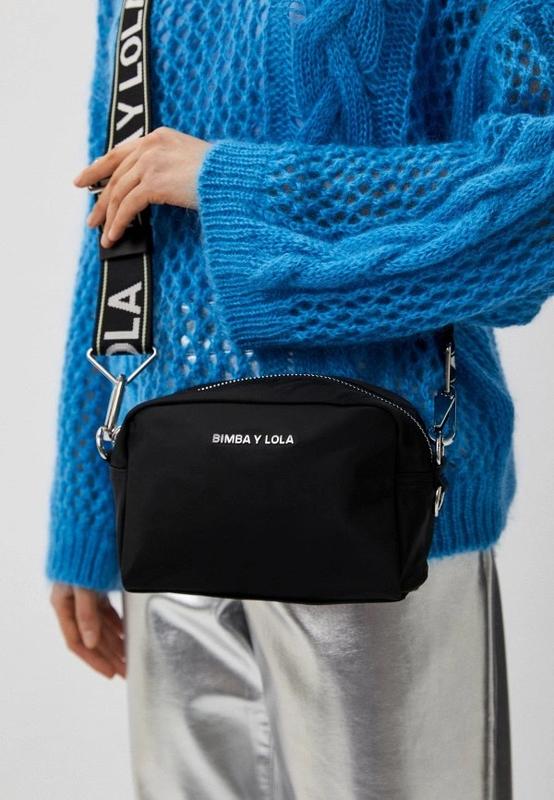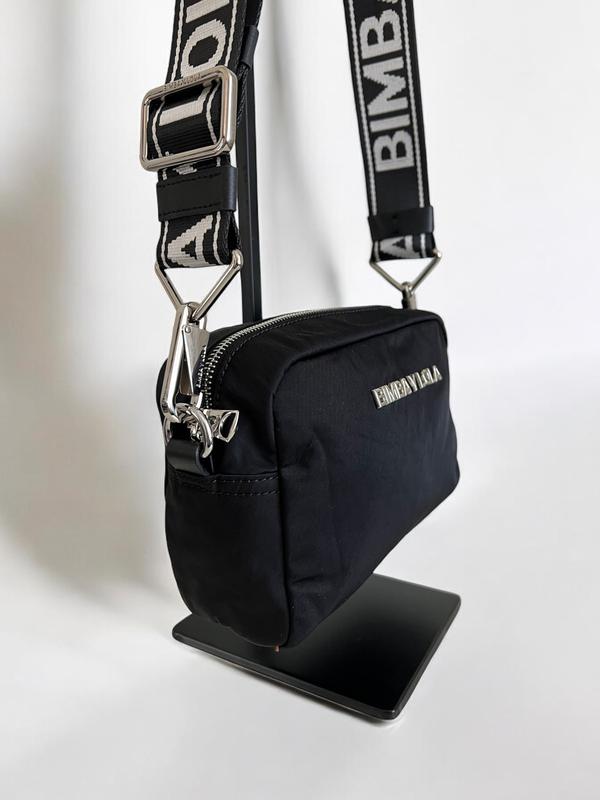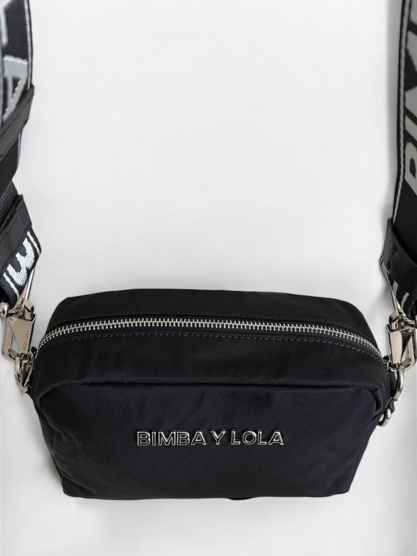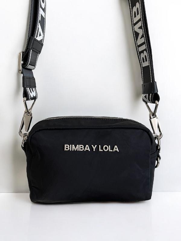 Стильная нейлоновая базовая сумка Bimba y Lola через плечо черного цвета.Небольшая модель со съемным ремешком с логотипом. С плоским внутренним карманом.
