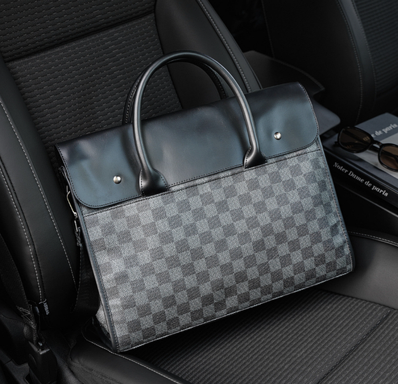Мужской деловой портфель для документов стиль люи витон клетка, офисная сумка