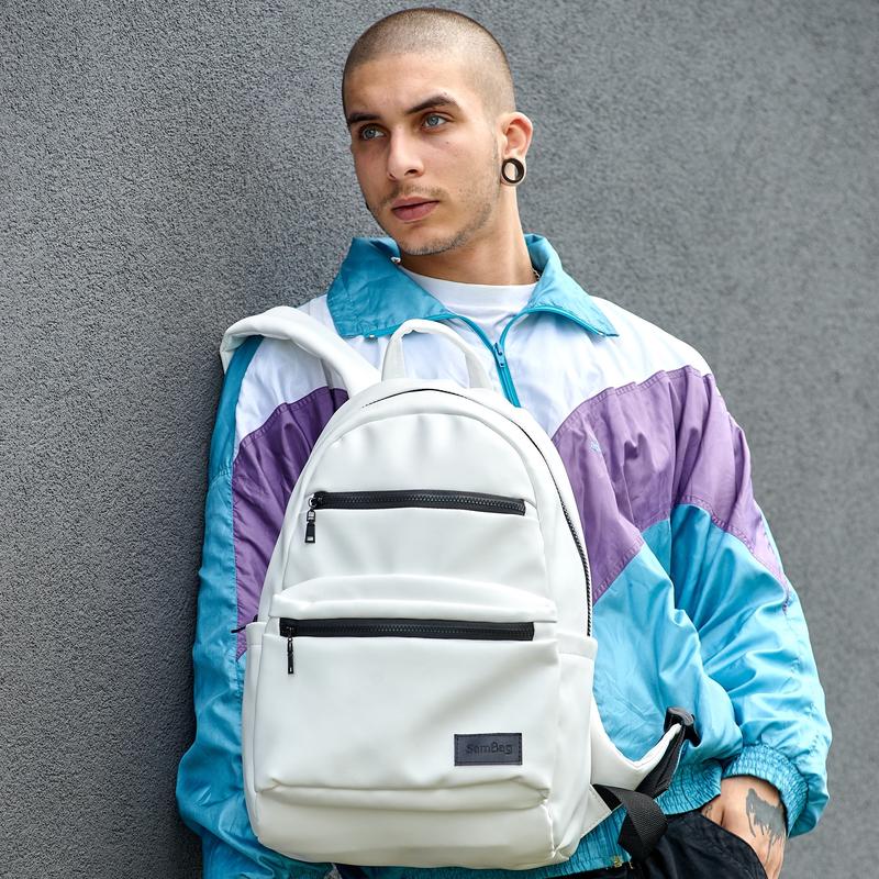 Рюкзак "Benny" виготовлений з сучасної та якісної еко-шкіри білого кольору, яка стійка до подряпин та не боїться морозу. Спереду рюкзака є дві кишені на блискавці: одна велика та менша над нею. З іншого боку середини кишеня на блискавці та одна відкрита кишеня. Основне відділення закривається на надійну блискавку, а в середині є спеціальне відділення для ноутбука до 14 дюймів. На спинці рюкзака є дві додаткові кишені на блискавці, одна з яких під формат А4. З боків дві відкритих кишені для різних дрібниць. Рюкзак гарно тримає форму завдяки ущільнювачу на стінках. Плечові ремені надійно прошиті, регулюються по довжині та приєднані до боків шкіряними трикутниками. Підкладка рюкзака виготовлена з міцного нетканого матеріалу, тому ви можете не переживати, коли кладете в середину ручки, олівці чи ключі від авто, адже на відміну від звичайної підкладки вона практично не рветься та легко миється. ✅ Виробництво: Україна💛💙 ✅ Матеріал верху: еко-шкіра; ✅ Розміри: 46*28*13 см. ✅ Доступний до замовлення у всіх базових кольорах! З будь-якими питаннями з приводу замовлень ви можете звернутись до наших менеджерів за телефоном: ☎️ +38 (************** Ми працюємо: понеділок – субота, з 9:00 до 18:00.