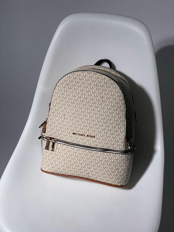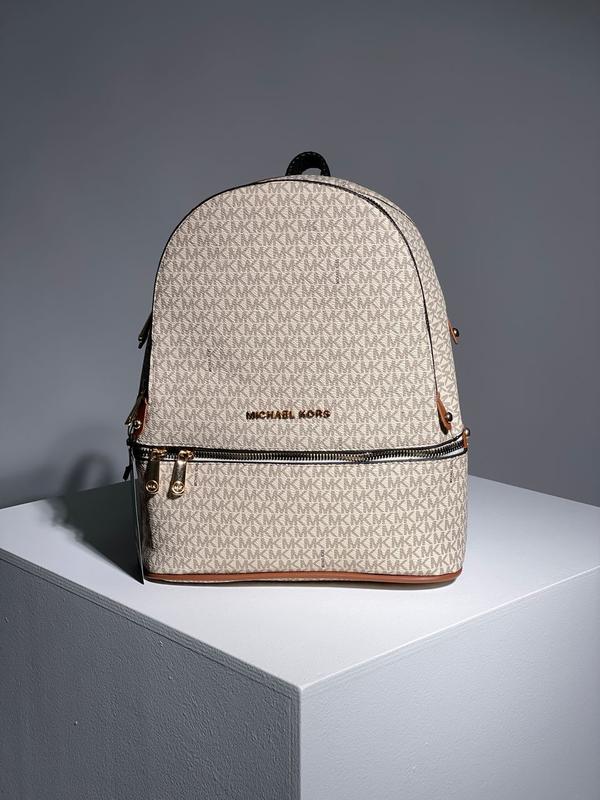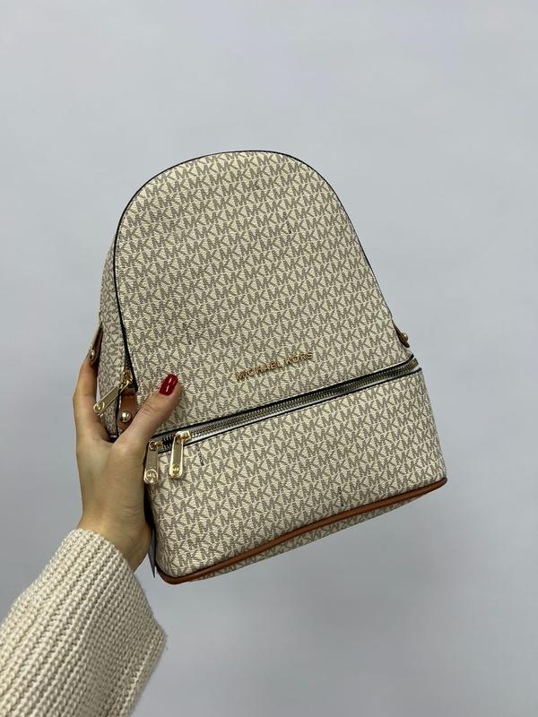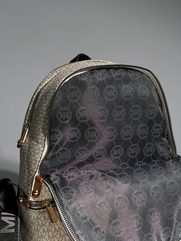 Рюкзак выполнен из экокожи с фирменной канвой.