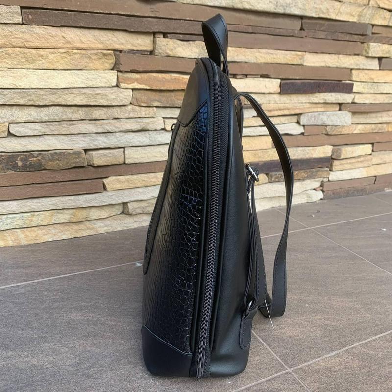 Большой женский городской рюкзак сумка трансформер под рептилию черный, сумка-