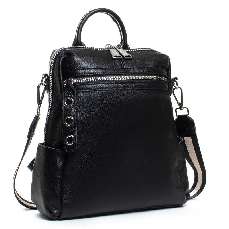 Жіноча сумка-рюкзак Alex Rai. Виготовлена з натуральної м'якої шкіри. Можна носити на плечі на широкому ремені. Закривається на блискавку. Всередині знаходиться основне і додаткове відділення, розділене кишенею-перегородкою на блискавці і кишеня на блискавці. Зовні рюкзака на фасаді і зворотному боці розташовані кишені на блискавці. На торцях рюкзака є невеликі відкриті кишені. Плечові лямки регулюються по довжині.
