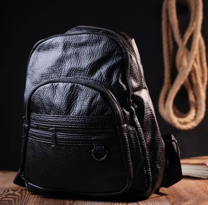 Практичный рюкзак на два отделения из эко-кожи высокого качества. Рюкзак очень вместительный. Изделие имеет очень практичный функционал. Рюкзак подойдет для городских прогулок и для ношения каждый день. Закрывается рюкзак на молнию. Внутри – качественная подкладка. Рюкзак из эко-кожи – бюджетное решение для вашего комфорта.