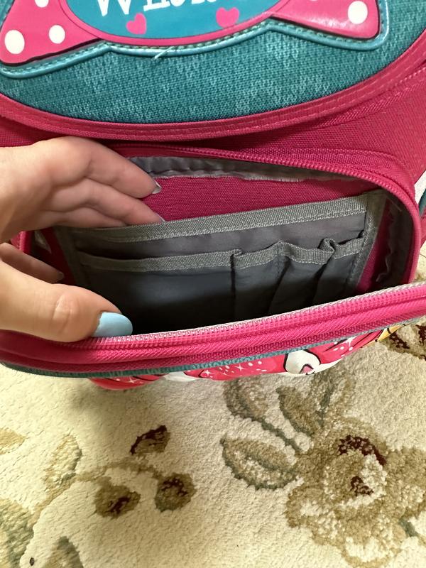 В центральном отделении есть два разделителя и резинка для крепления школьных принадлежностей.