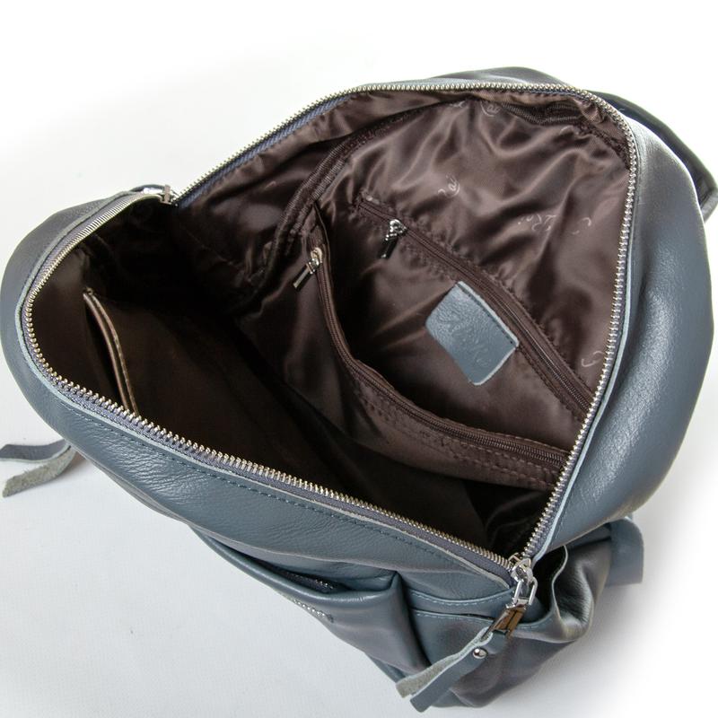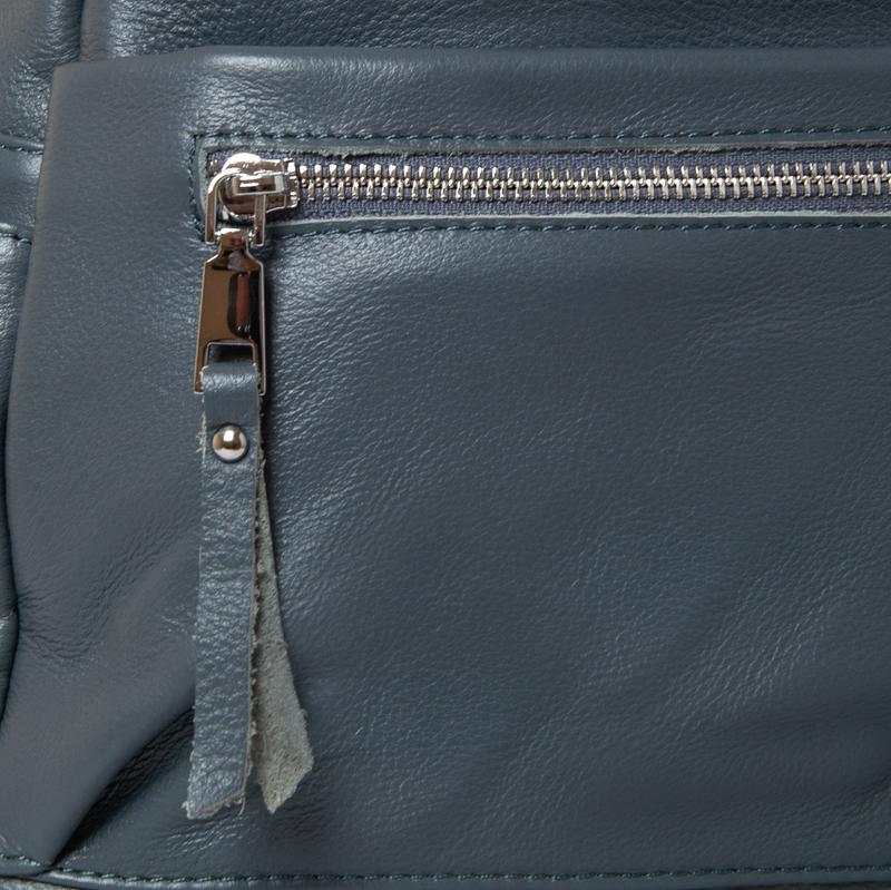 Виготовлений із натуральної м'якої шкіри. Закривається на блискавку. Усередині знаходиться подвійне відділення, розділене кишенею-перегородкою на блискавці, відкрита кишеня та бічна кишеня на блискавці. На фасаді є дві кишені на блискавці, а на звороті одна кишеня. На торцях є невеликі відкриті кишені. Плечові лямки регулюються по довжині