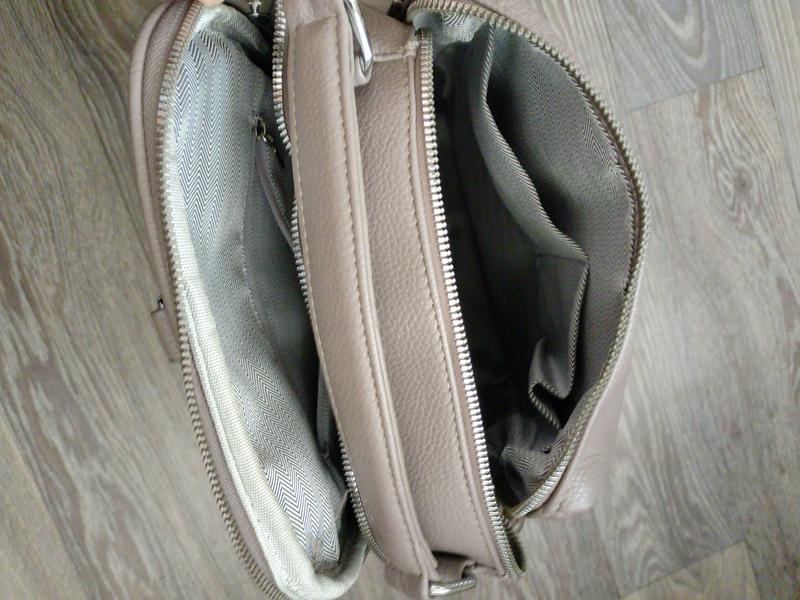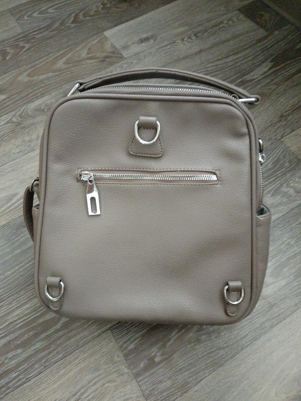 Сумка рюкзак имеет 2 отделения на молнии,боковые карманы и сзади на молнии. Изменение ручка которая используется как для рюкзака так и сумки. Подклад чист, фиксов нет. Размеры: высота28,ширина 25,дно13