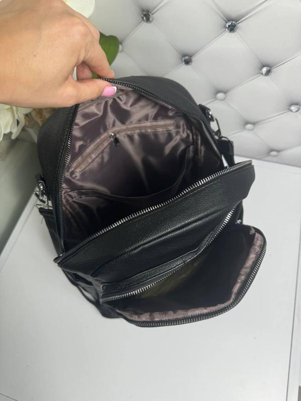 Два отделения на молнии. Внутри открыт карман и карман на молнии.