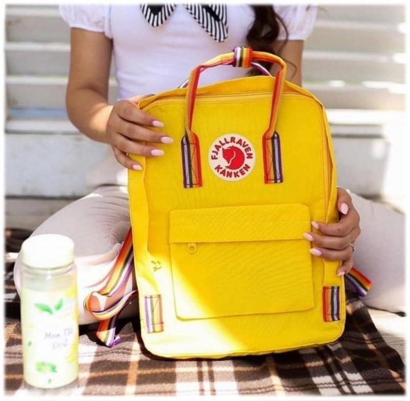 Рюкзак сумка fjallraven kanken с радужными ручками канкен желтый радуга 16 литров портфель...