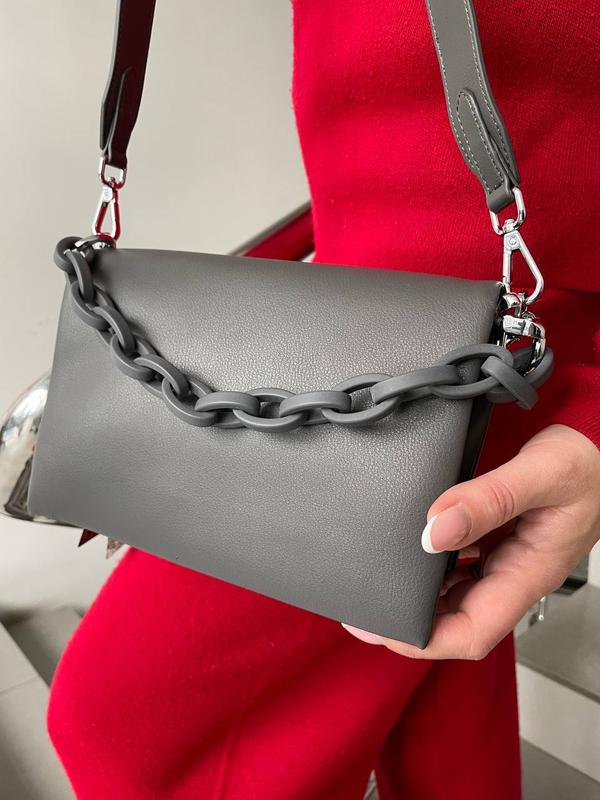 Сумочка с клапаном .стильная, среднего размера .цвет серый .кожа люкс матовая .