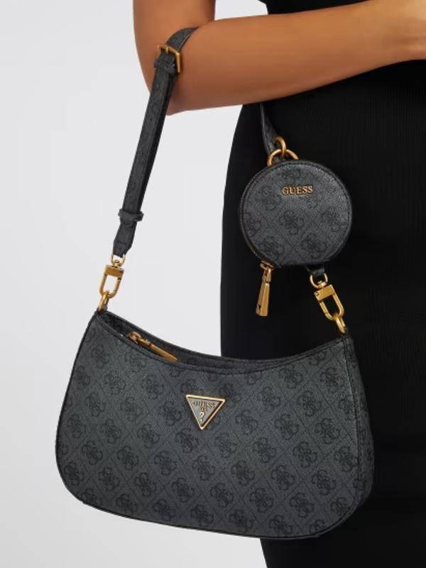 Сумка GUESS Alexie. Оригінал. Матеріал: екошкіра. Колір: чорний лого Розмір: 23.5/29 Бомбезний майка топ від guess Довжина ручки 30см. (ручка знімна) Відправлення НП за передплатою 150 грн.
