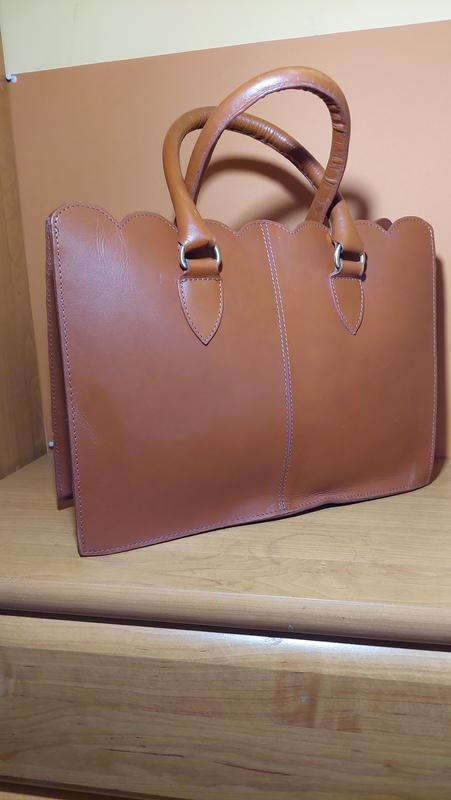 Женская сумка В отличном состоянии Из 100% кожи На двох ручках Внутри имеет три отделения Размеры длина-38смвысота-28смширина дна-12смдлина ручек-48см