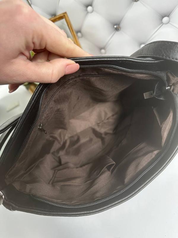 Одно отделение на молнии. Внутри карман для телефона и карман на молнии.