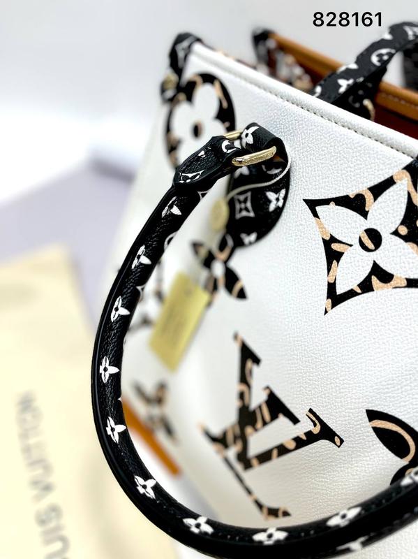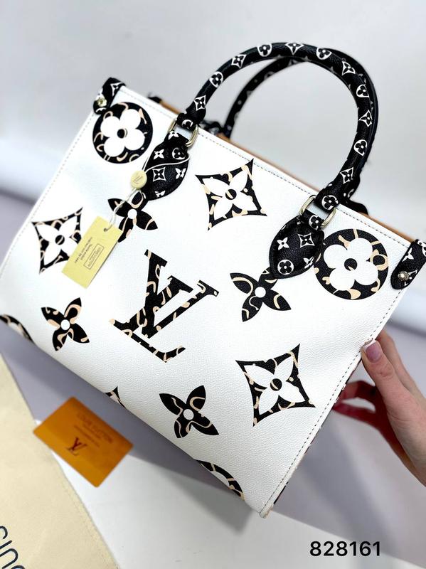 Наличие уточняйте Двокольорова сумка Кольори: белый/кемелчерный/кемелМатериал: канва экокожа Размеры: 35/28/14смЛоготипыКороткие ручкиДовгі ручки