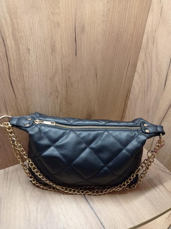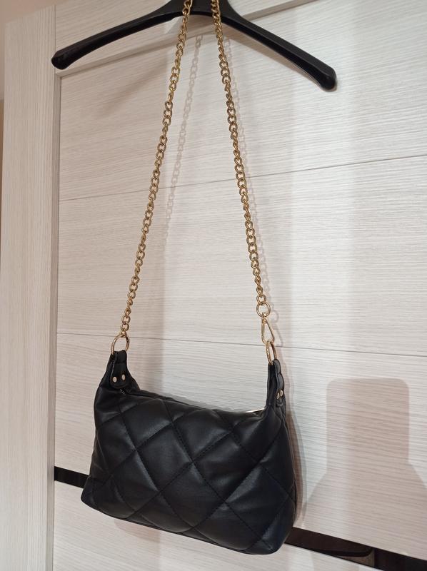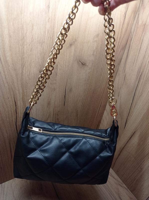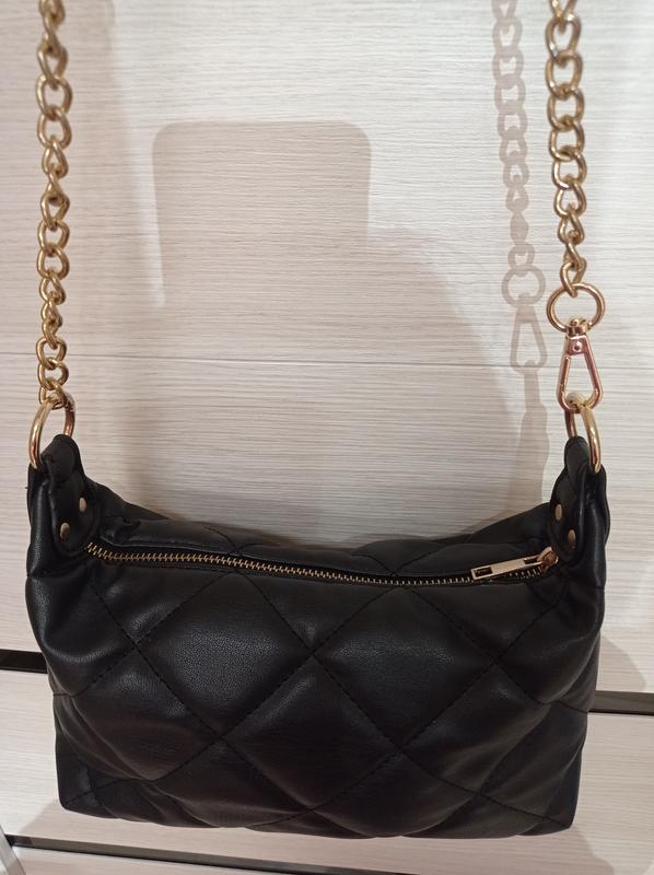 очень красивая сумочка, не величка но содержимое. цепочку можно делать через плечо или на плечо с помощью карабина. состояние идеальное. практически не носилось