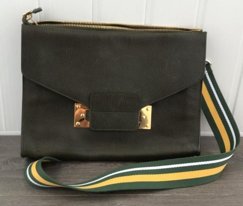 невероятно красивая сумка, натуральная плотная кожа, состояние новой. премиум бренд Sophie Hulmeприобретала здесь, на шкафу, но поносить не удалось.может быть сумкой для ноутбука.