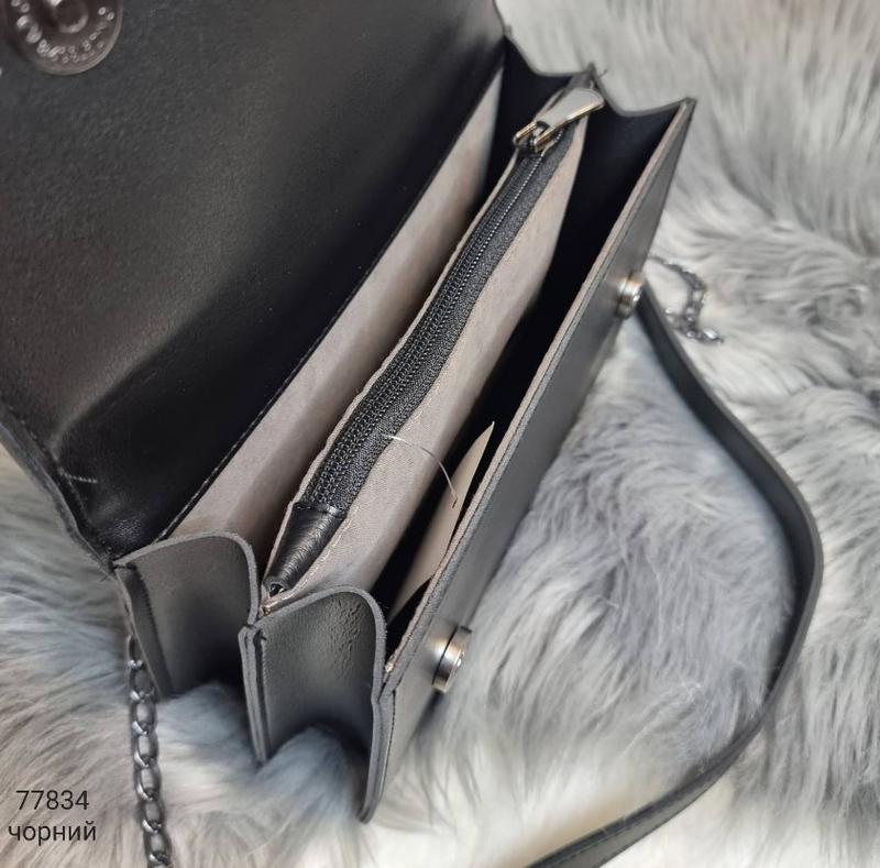 СОСТАВ: Два отдела сверху закрываются клапаном на кнопку-магнит. Внутри есть карман на молнии.