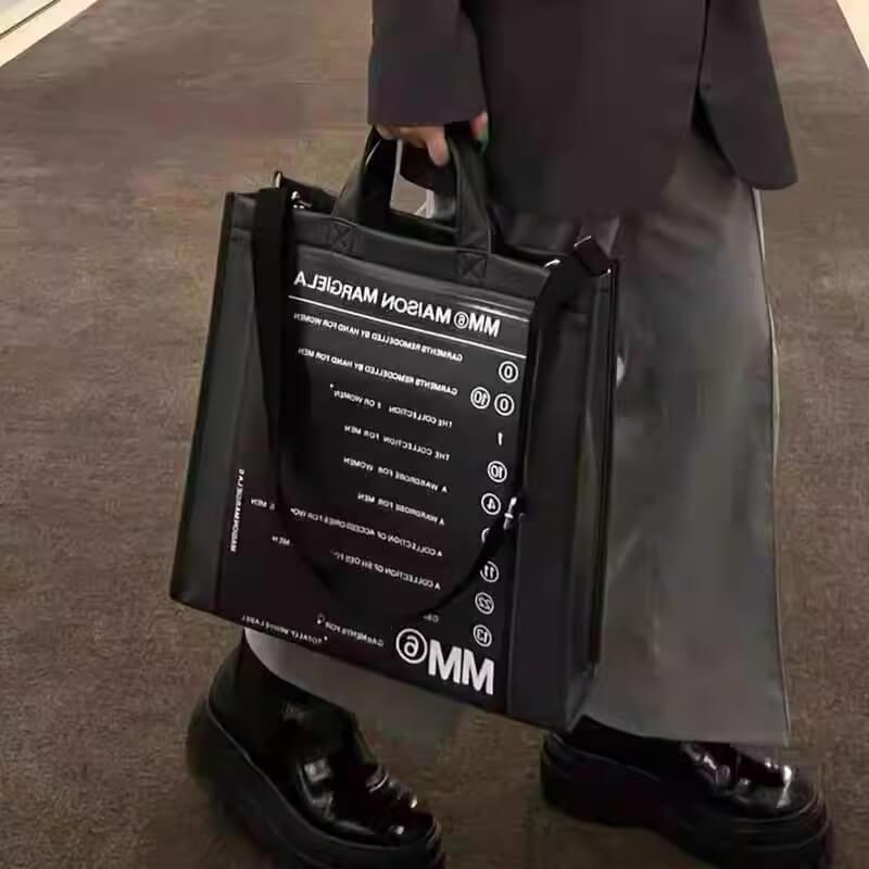 Если Вы ищете универсальную сумку, которую можно носить как на работу, так и на прогулку, этот вместительный женский тоут от бренда MM6 Maison Margiela – идеальный выбор. Большое отделение внутри позволяет хранить много вещей. Базовый черный цвет и строгая прямоугольная форма способствуют тому, чтобы удачно сочетать ее с различными нарядами. С декора на ней спереди можно увидеть крупный принт с интересными фирменными надписями. В комплекте – плечевой ремень.