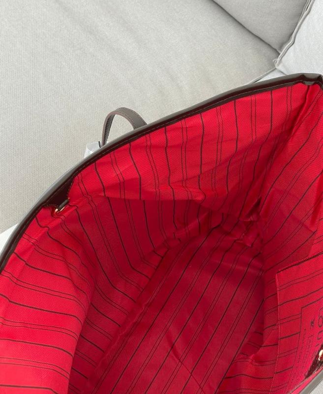 Подкладка внутри сумки классически - из красного текстиля, в полоску.