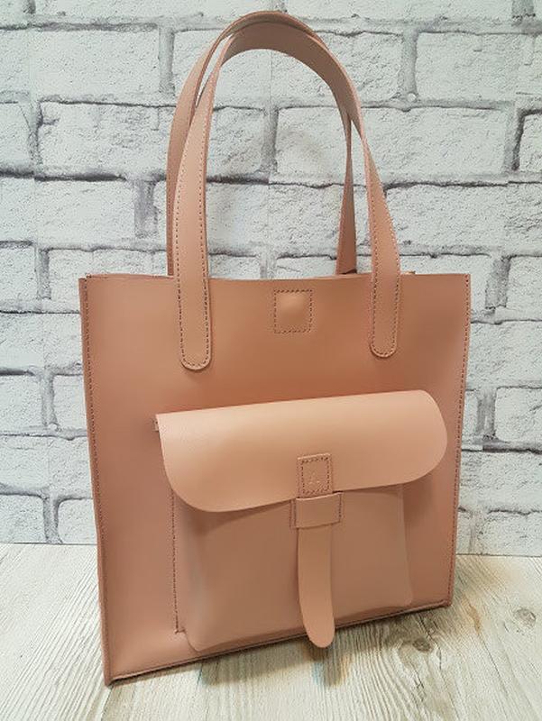 Снаружи имеется кармашек, который закрывается на ремешок.