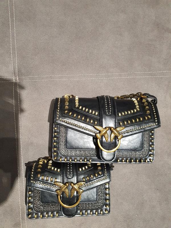 Черная сумка стиля Pinko, Натуральная кожа находится в двух размерах больше и меньше. Сумочки новые. Цена большей 3300грн, Цена меньшей 2999грн. Есть пышки, коробов, кляска, нет.