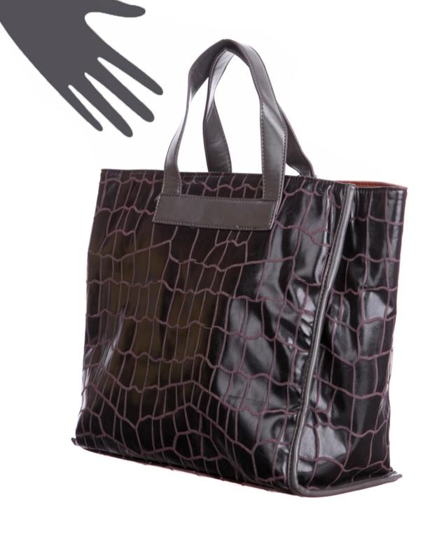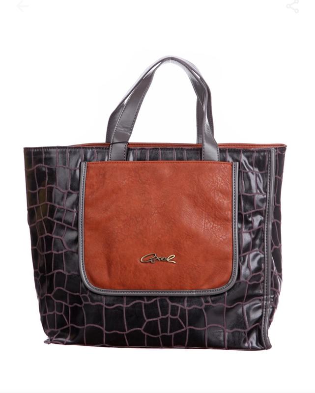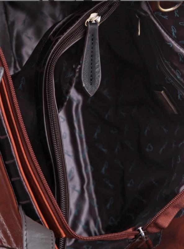 Сумка на два отделения на молнии, внутри два накладных кармана, один на молнии.Висота 30 см., ширина 35,глибина 15 см.Есть сменная ручка.Екокожа.