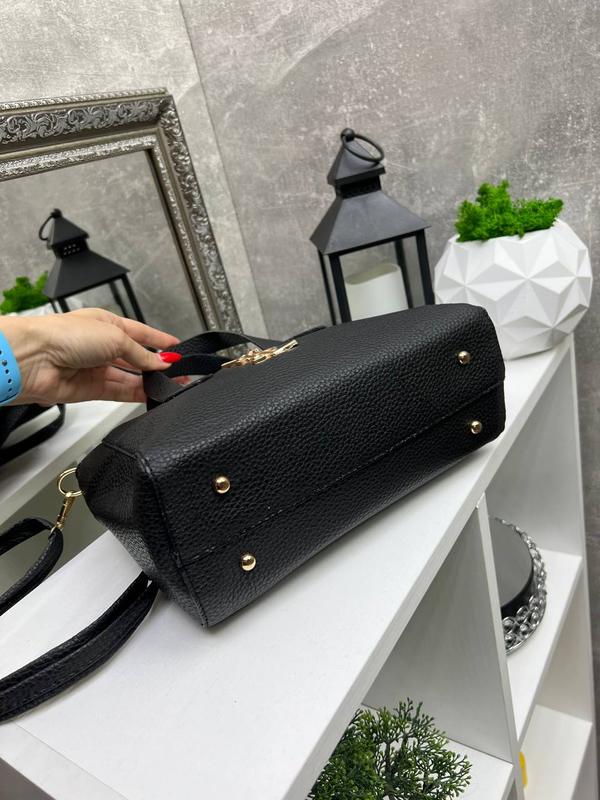 25 см ширина. 18 см высота. 10 см одно. Одно отделение на молнии. В комплекте съемный плечевой ремень максимальной длиной 120 см. К каждой сумочке идет платок. Цвет платинки может отличаться от фото.