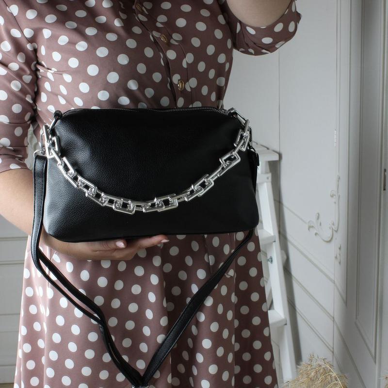 Материал - мягкая эко кожа. Размер: ширина по дну - 28 см, высота - 18 см, глибина - 8,5 см. Ремешо к регулируется до 135 см. Два отдельных отделения на молнии. Внутри открытые кармашки и кармашки на молнии. На обратной стороне кармана на молнии. Код - Д215.