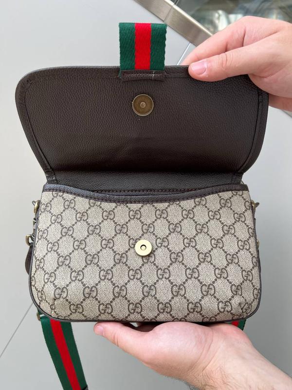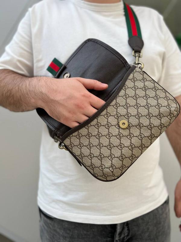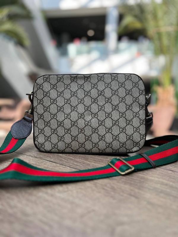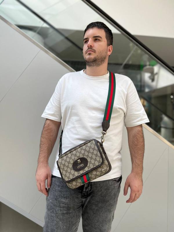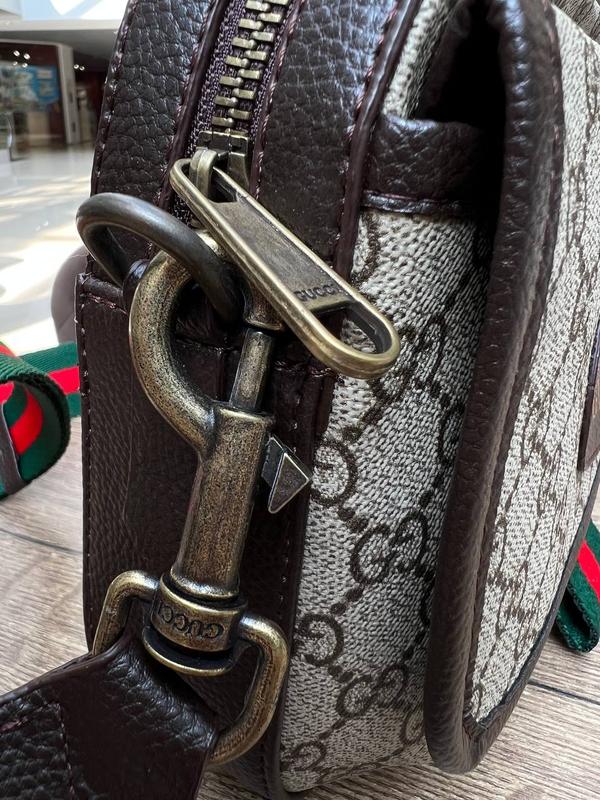 Сумка имеет два отделения: основное на молнии, другое на передней части сумки на магните. Ремешок регулируется, его длина 150 см. Фирменная гравировка.