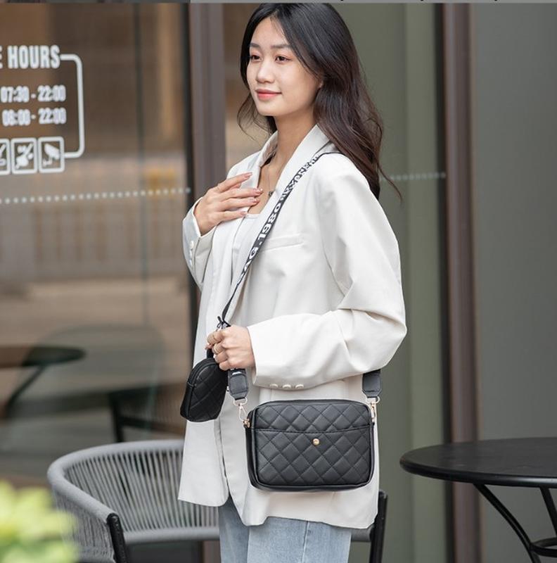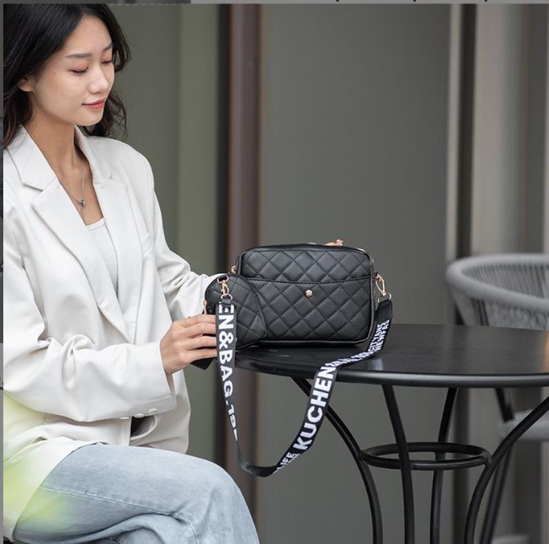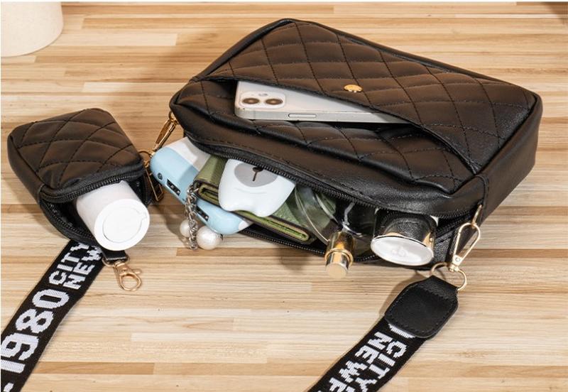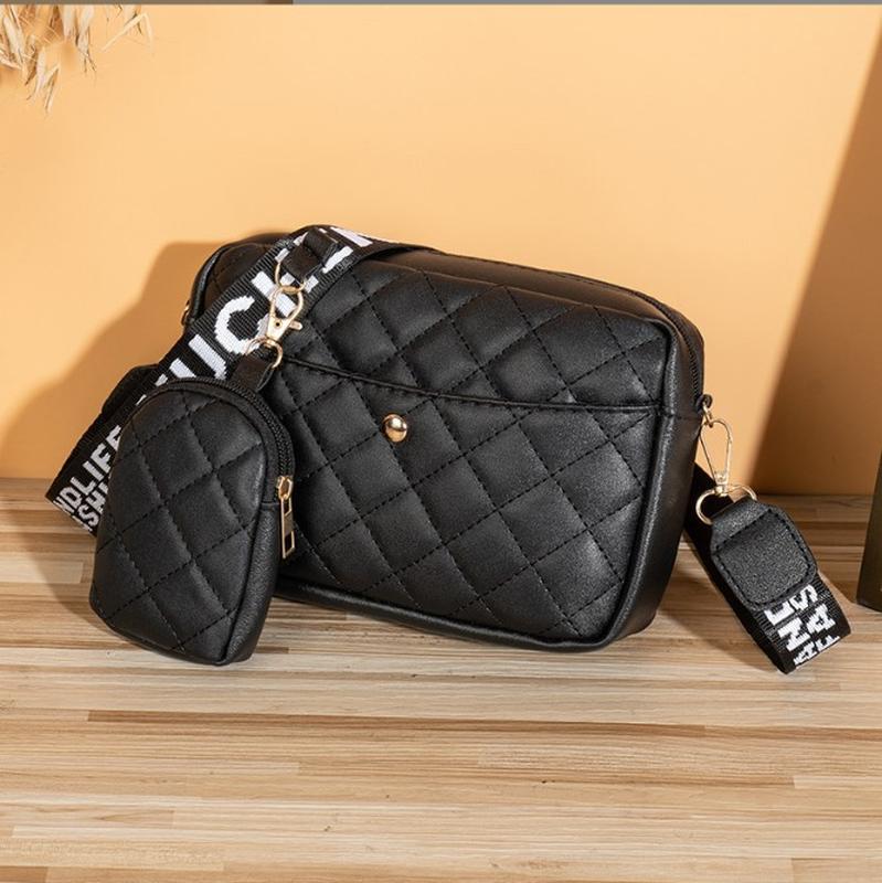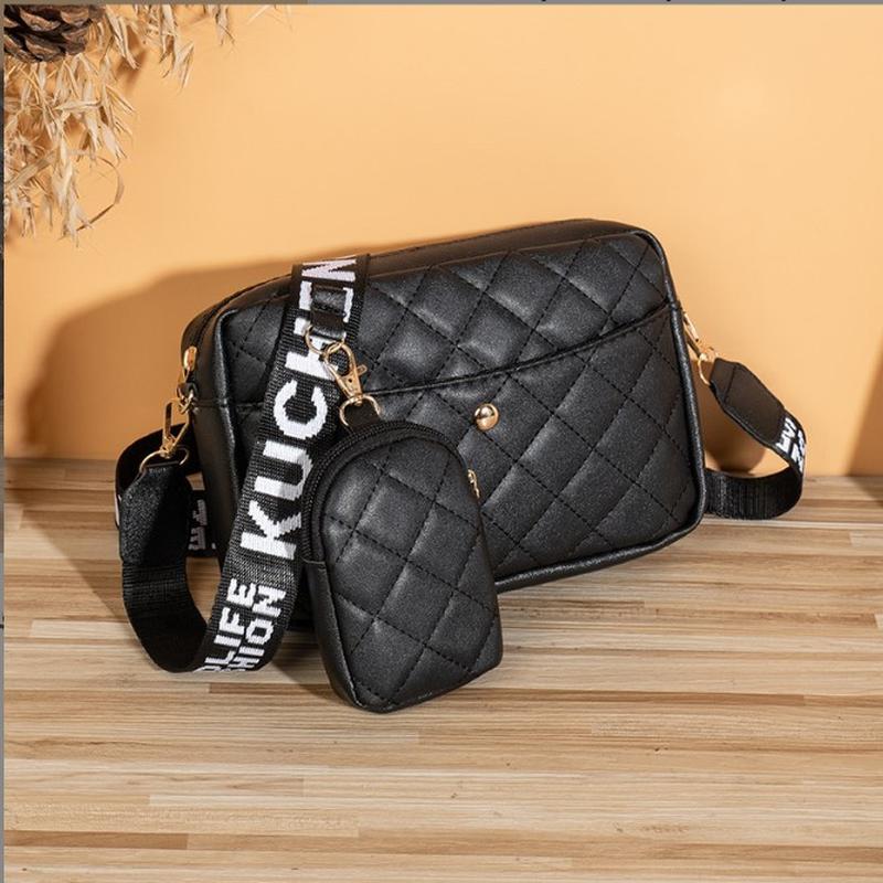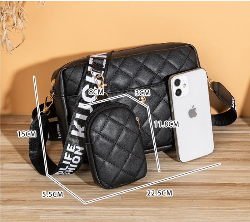 Современная женская черная сумка +кошелек через плечо из экокожи, трендовая