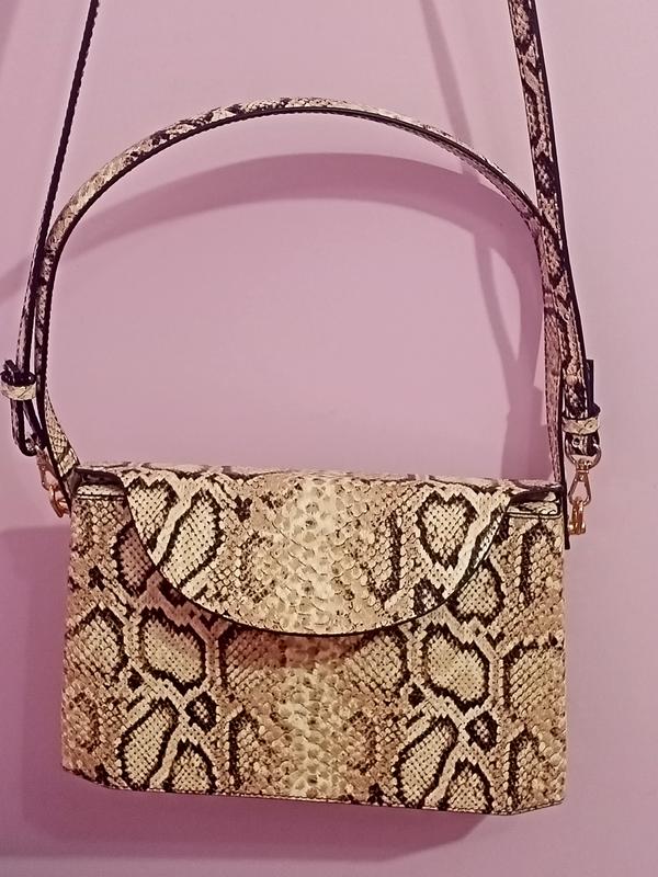 Крутая, стильная женская сумочка, змеиная кожа. Фирменная.Нова.Твердый клатч, на магните и кнопке. Размер 26.0x16.0x6.0cm ( длина,высота, ширина).Две ручки: короткая и длинная ( регулируется)Фурнитура - золотая.
