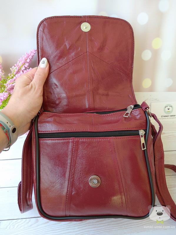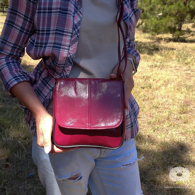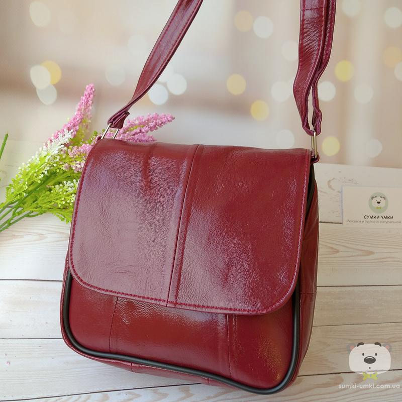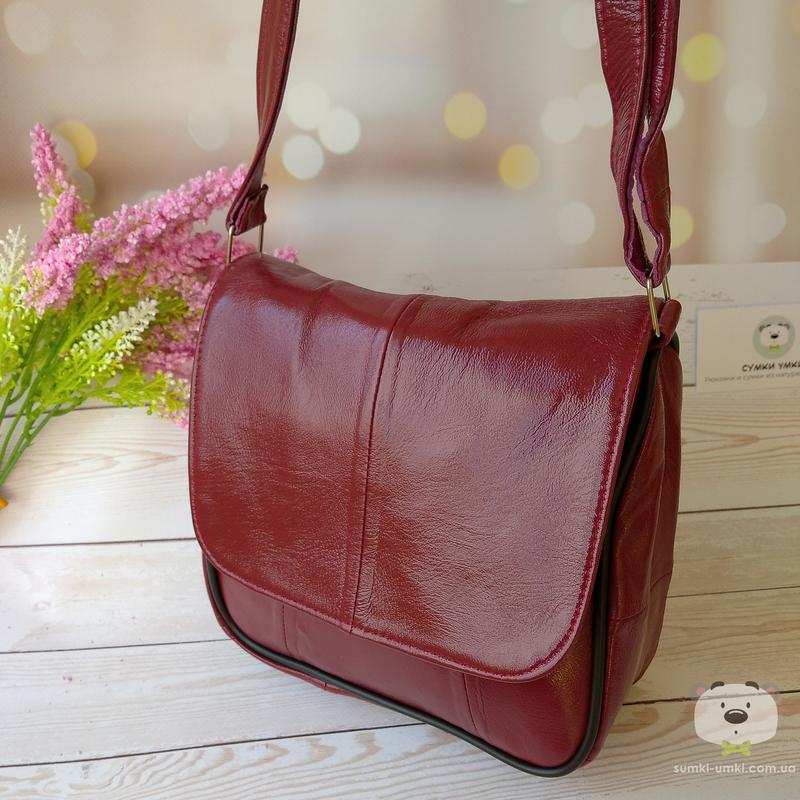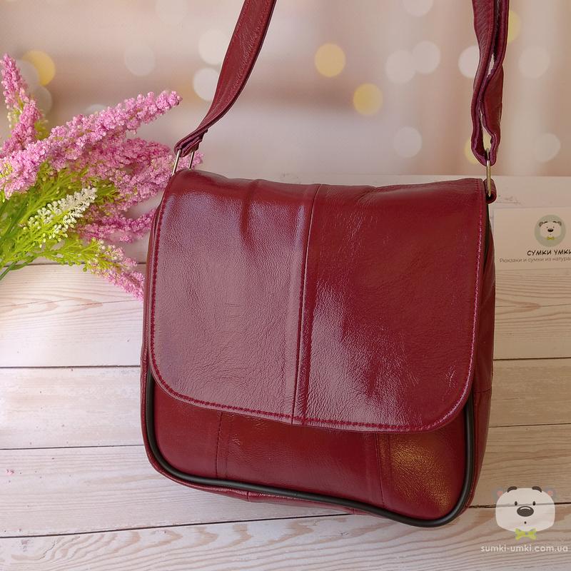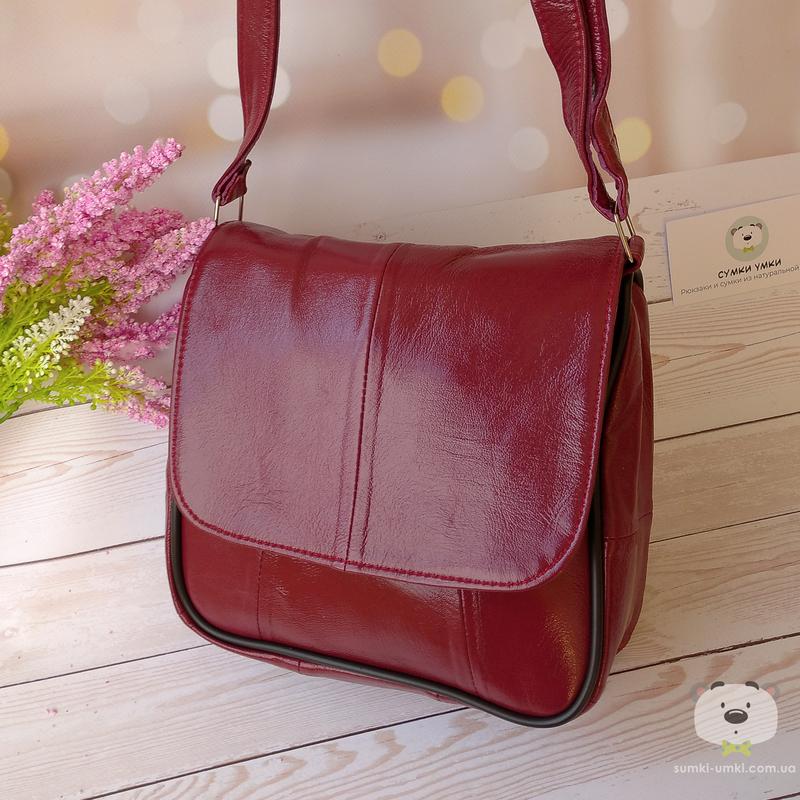 Женская кожаная лаковая сумка Люсиль – сумка из натуральной, лаковой кожи. Цвет – бордо