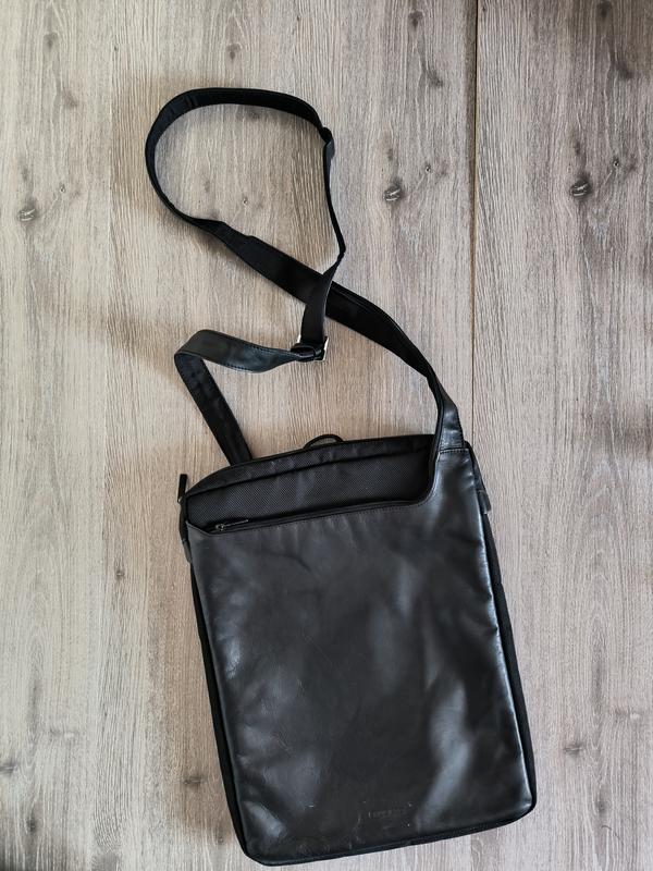 Сумка наплечная чёрная текстиль + кожа натур.На одно отделение с карманчиками и один карман на молнии снаружи.37×29×4