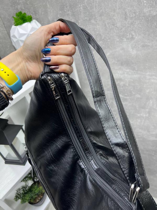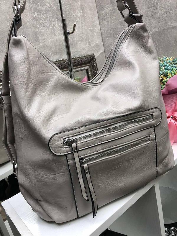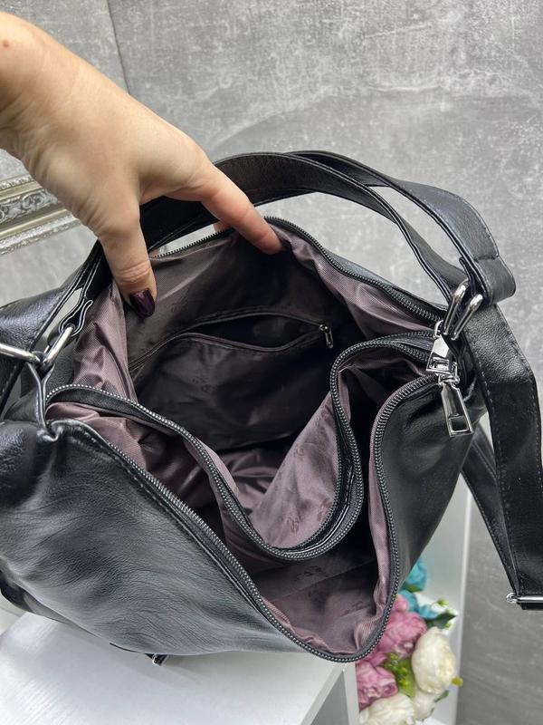 Два отдельных отделения на молнии. Внутри открыт карман и карман на молнии.