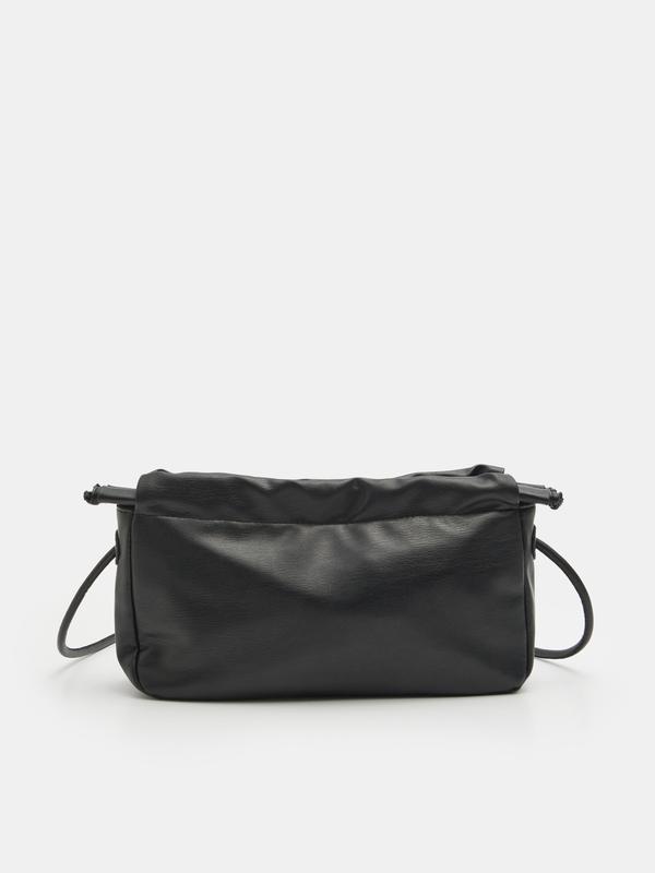 Фірмова жіноча міні-сумочка Sinsay з ланцюжками для стяжки. Має один основний розділ, який закривається на магнітну кнопку, в середині сумочки маленька кишеня на блискавці.