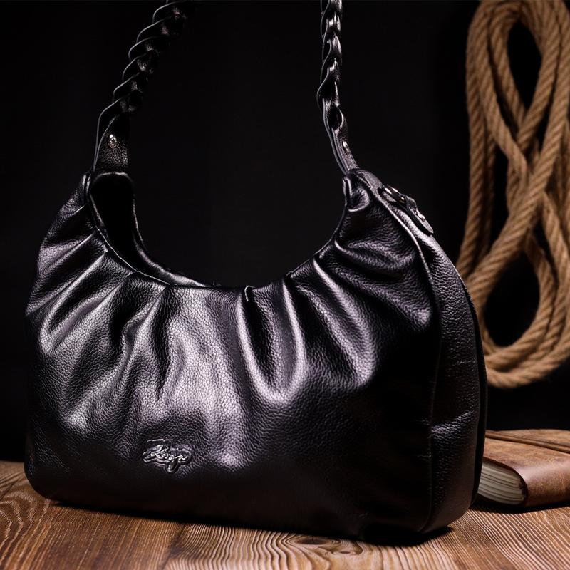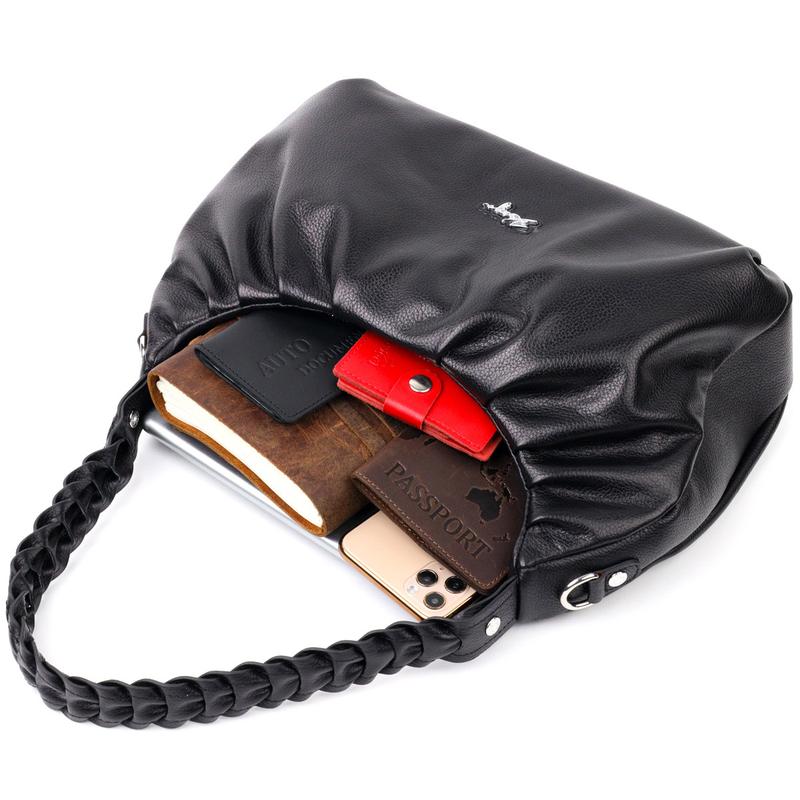 в классическом черном цвете. Изделие имеет надежную плетенную ручку для