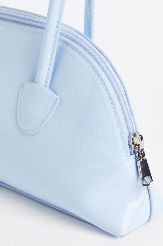 Сумка с двумя длинными ручками, что позволяет носить ее в руке или через плечо. Сверху застегивается на молнию. С подкладкой. Высота 13 см, ширина 27 см, глубина / толщина 5 см.Лакова
