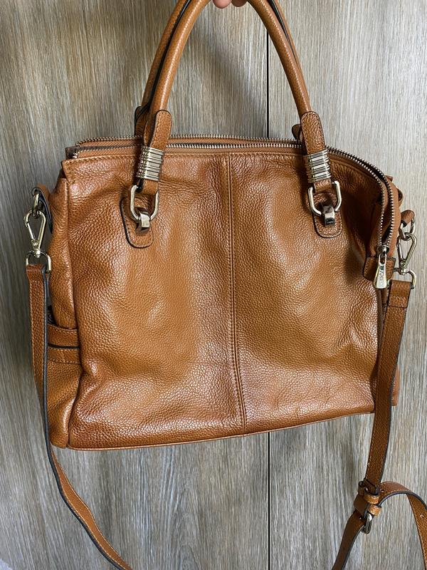 Очень красивая сумка фирмы S Zone, выполнена из качественной натуральной волевой кожи,стан новой вещи Отлично ложится на плечо Закрывается на молнию, добротная фурнитура Внутри 2 отделения, замеж ими карман на молнии, карман на молнии. Ширина: 32,5 см Высота 27 см Ширина дна 11,5см