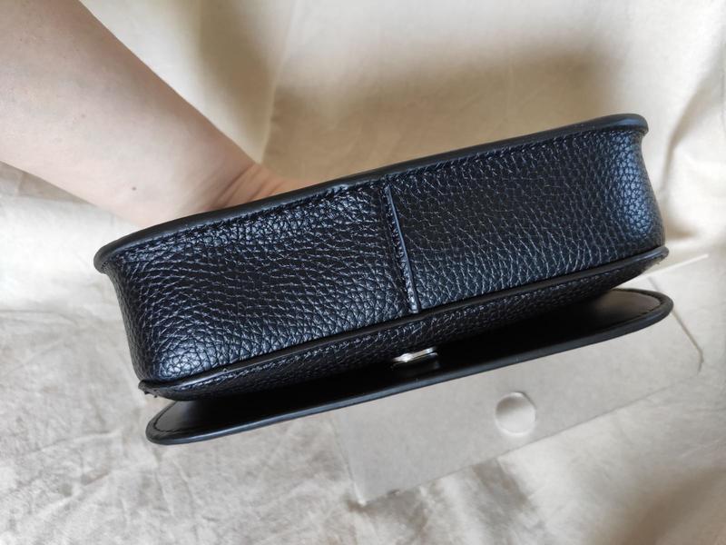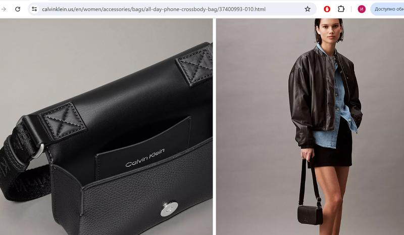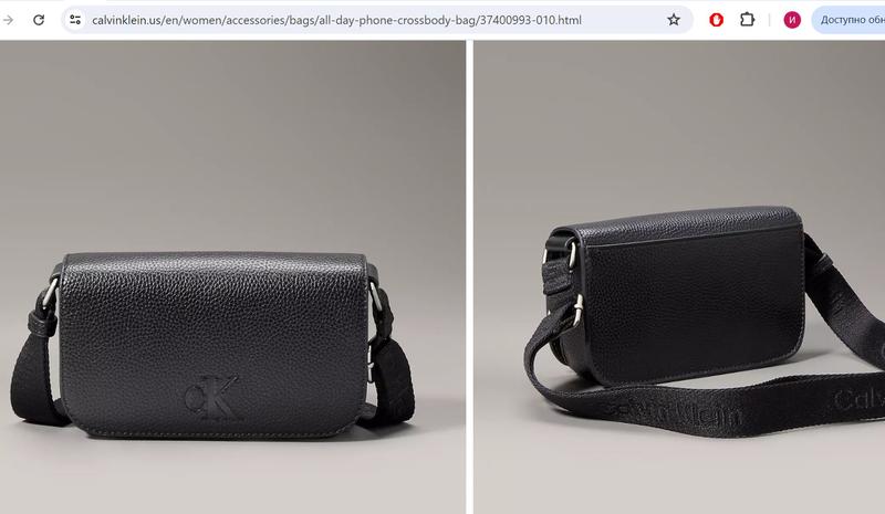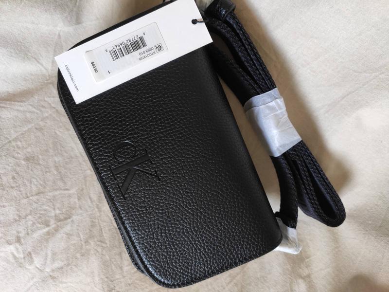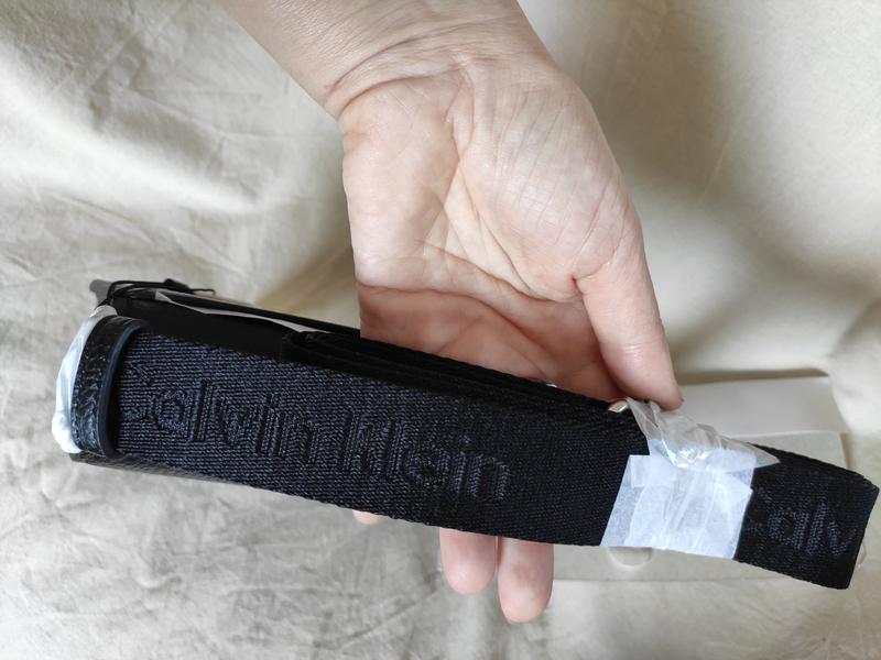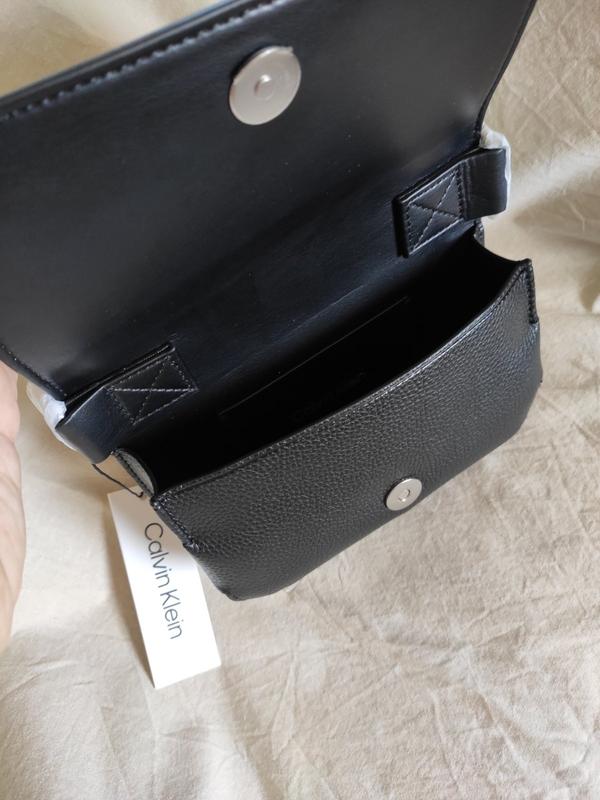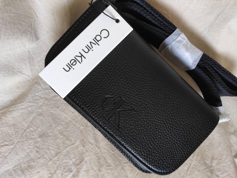Застегивается на магнитную кнопку. В середине сумки один совместный отдел и кармашек для карты. Отделка деликатным логотипом монограммой CK на сумке и названием бренда на регулируемой тканевой ремешке.