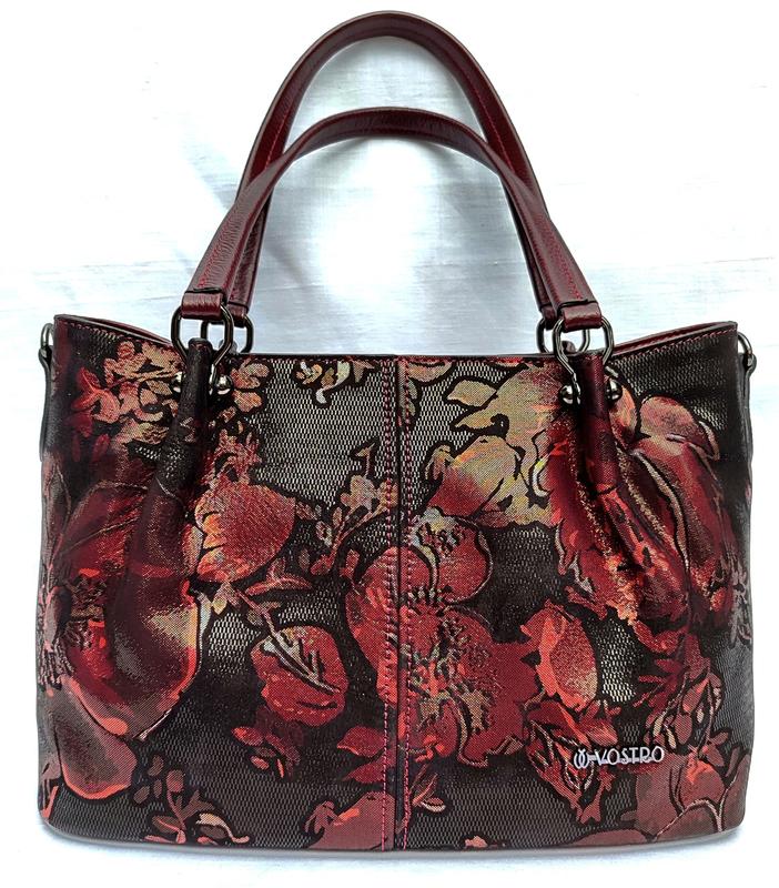Сумка из натуральной кожи бордового цвета vostro 20245 большая цветочный принт