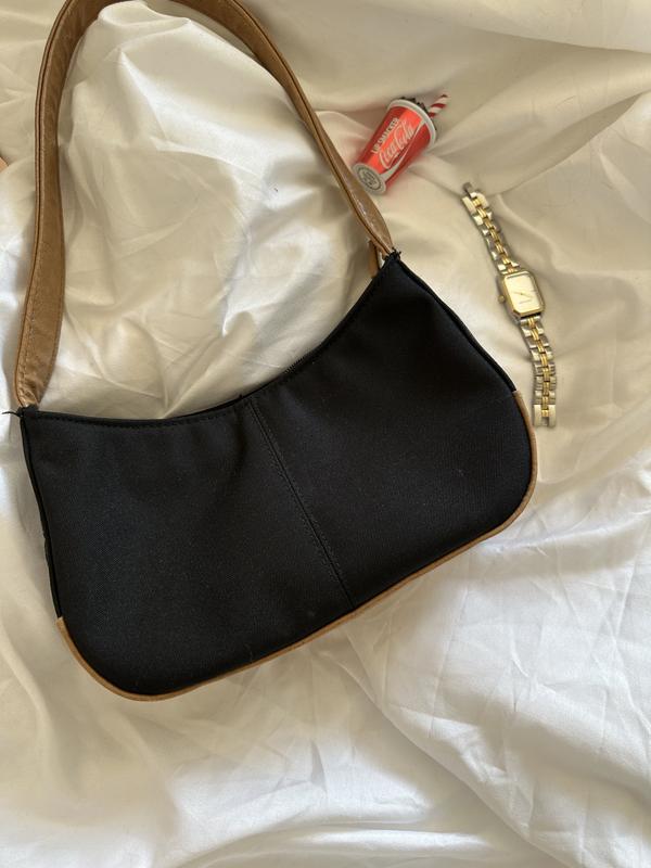 Стильная сумка багет а-ля 2000-ниИз плотного черного текстиля, который сочетается с коричневым кожзаменителем.В идеальном состоянии.