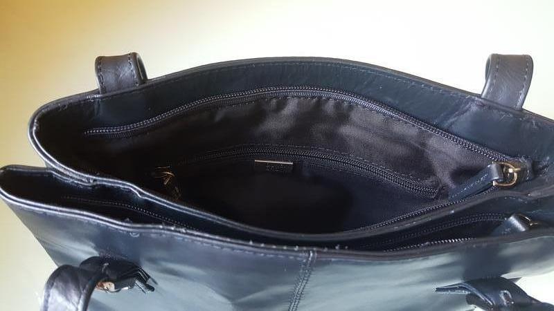 Внутри сумка имеет два отделение + карман на молнии + кармашек для сотового