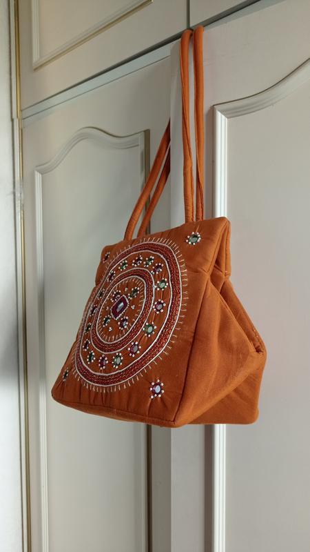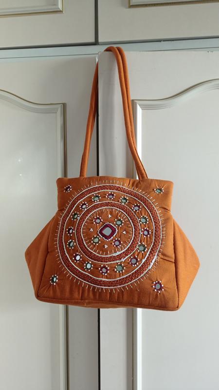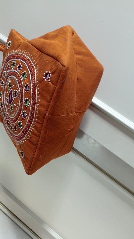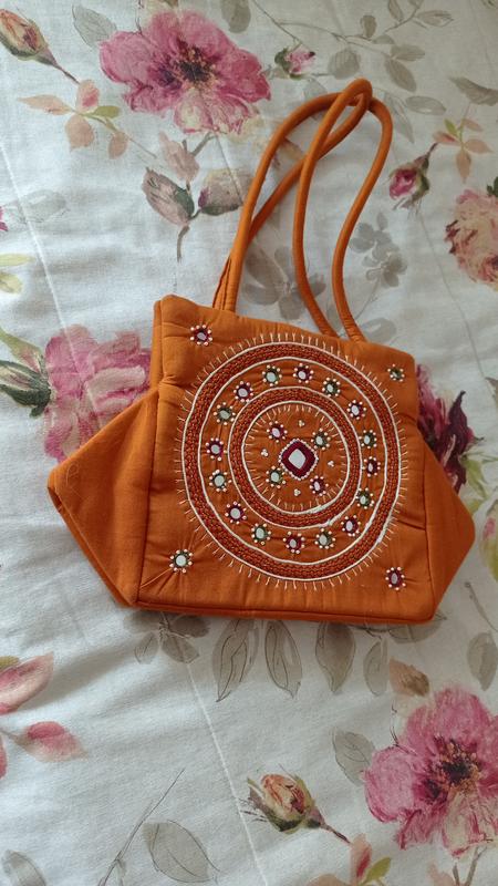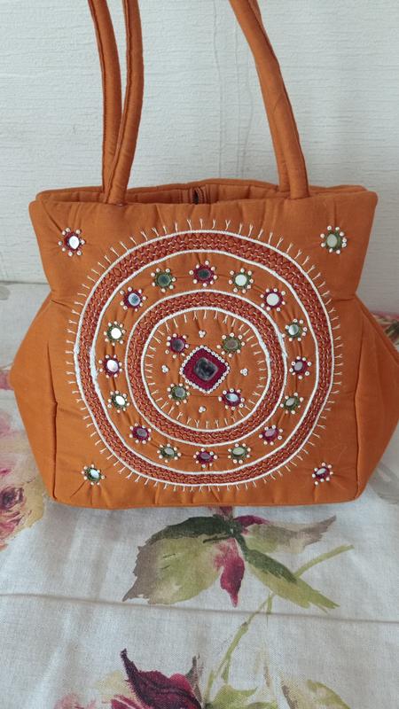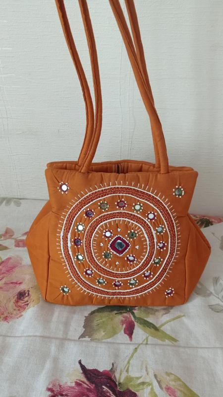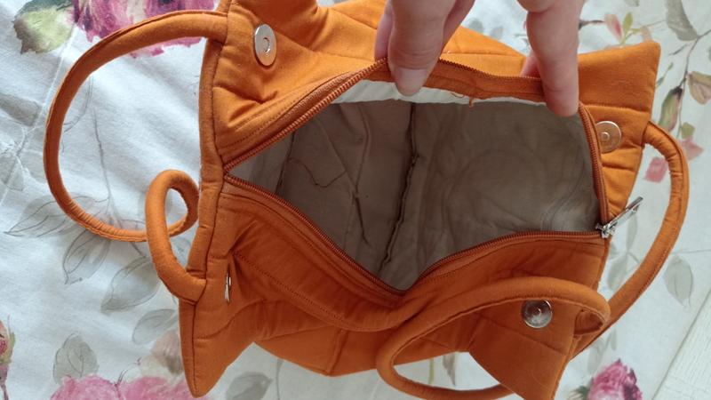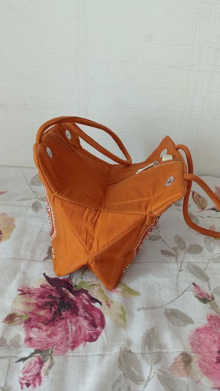 Яркая текстильная сумочка, небольшая, но вместительная и очень удобная, легкая. Стан - безупречный, пару лет пролежала в моей коллекции новенькой, решила расстояться. 22 на 22.