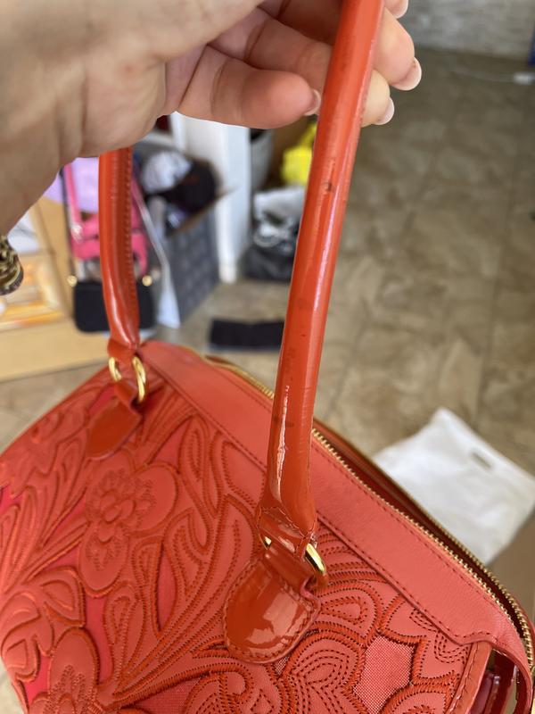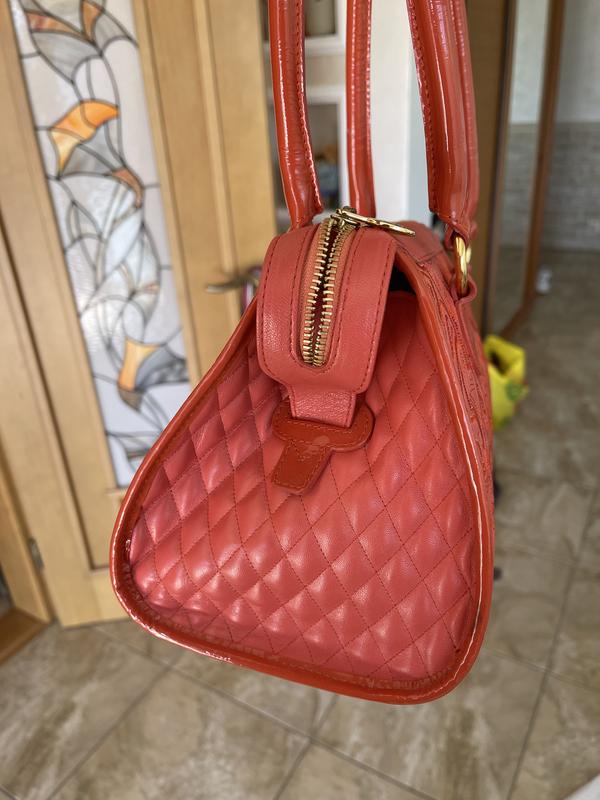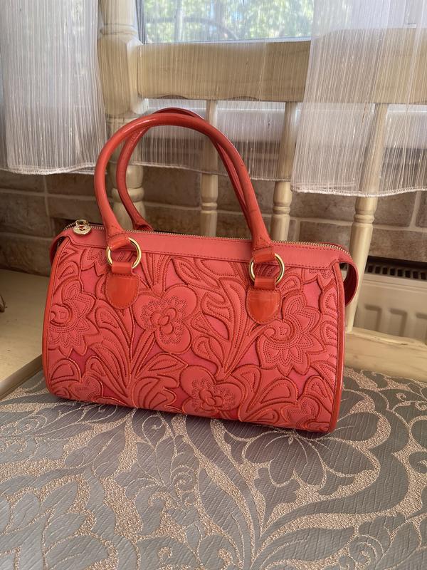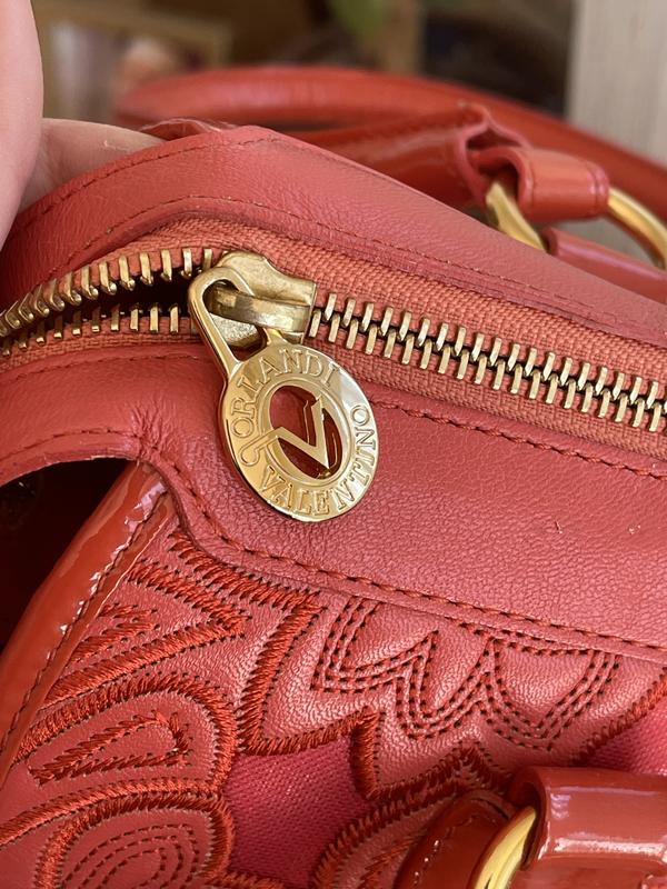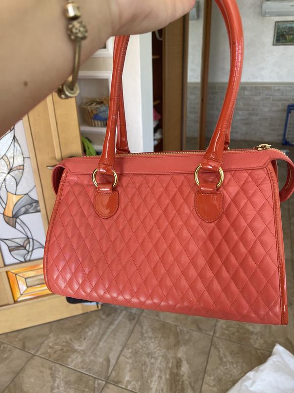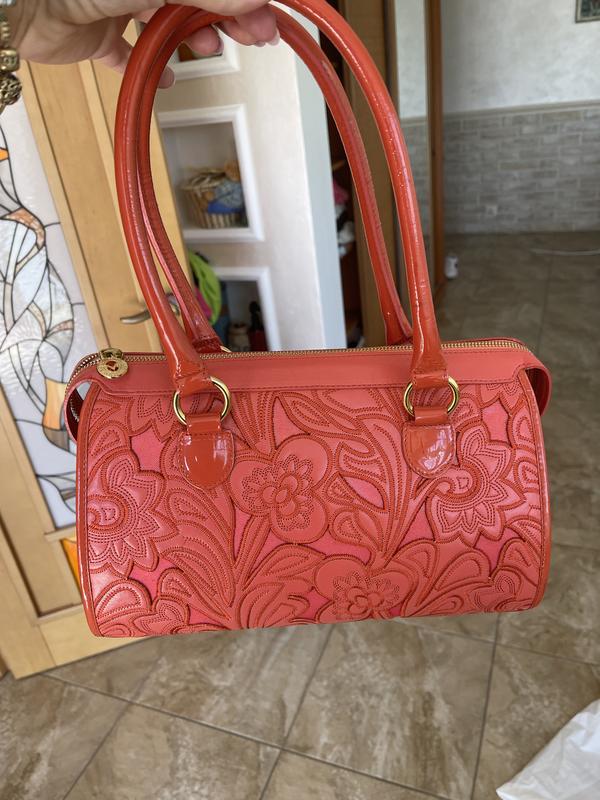 30x23x17 Valentino Orlandi оригинал. Итальянская Сумочка в новом состоянии, единственное есть какая-то отпечатка на ручке показала на фото 9. -в носке не заметно. Нежный коралловый цвет. Очень качественная кожа, сумочка сверхлегкая и качественная.