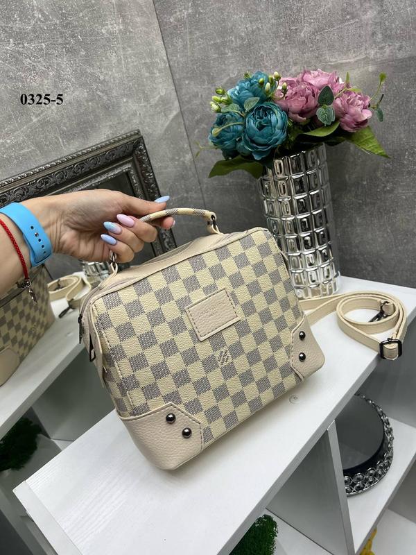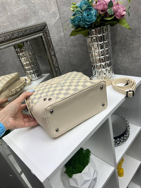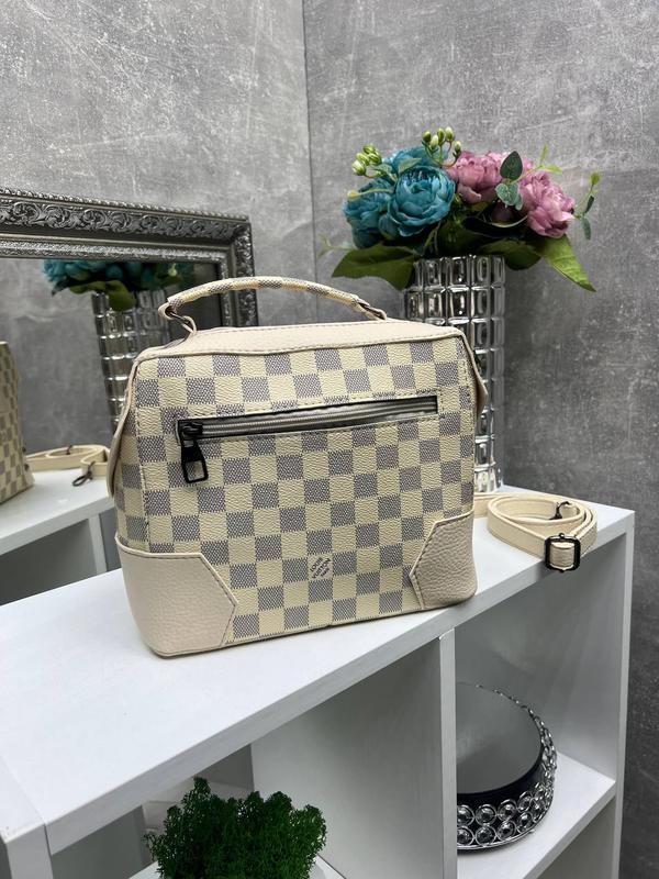 Женская стильная и качественная сумка из эко кожи бежевая в клетку