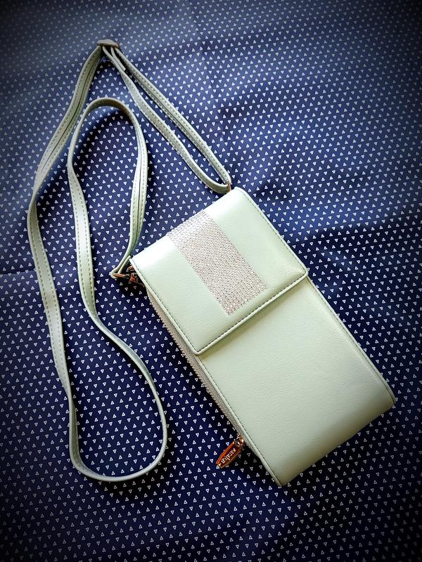 Изысканная маленькая сумочка-клатч со стразами. Из качественной, приятной на ощупь, мягкой эко-кожи. Сумочка в состоянии новой, только без бирки. Без дефектов. Не носилась. Внутри три отделения - один для смартфона - застегивается на молнию, два других - для плоских мелочей (купюр, банковских карт). Качественная фурнитура, в серебряном цвете. Стразы очень красиво переливаются. Есть съемный тоненький ремешок для ношения через плечо. Цвет сумочки, как на фото - нежно светло-зеленковатый. Замеры: высота - 20 см длина 10,5 - 11 см ширина 3 - 4 см длина ремешка регулируется - до 130 см