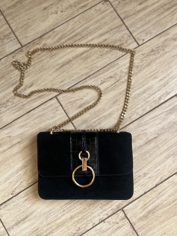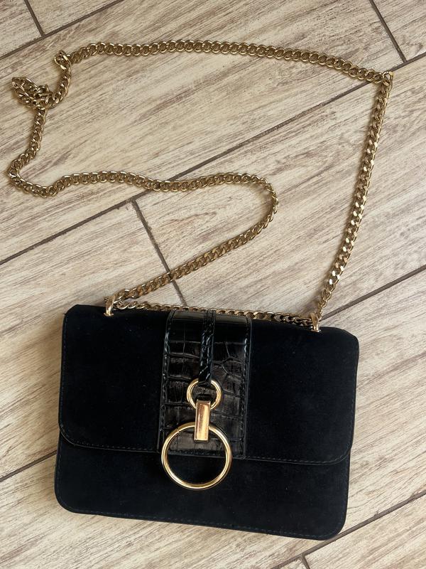 Сумочка женская от бренда New Look из искусственной замши и искусственной кожи, украшенная кольцами золотого